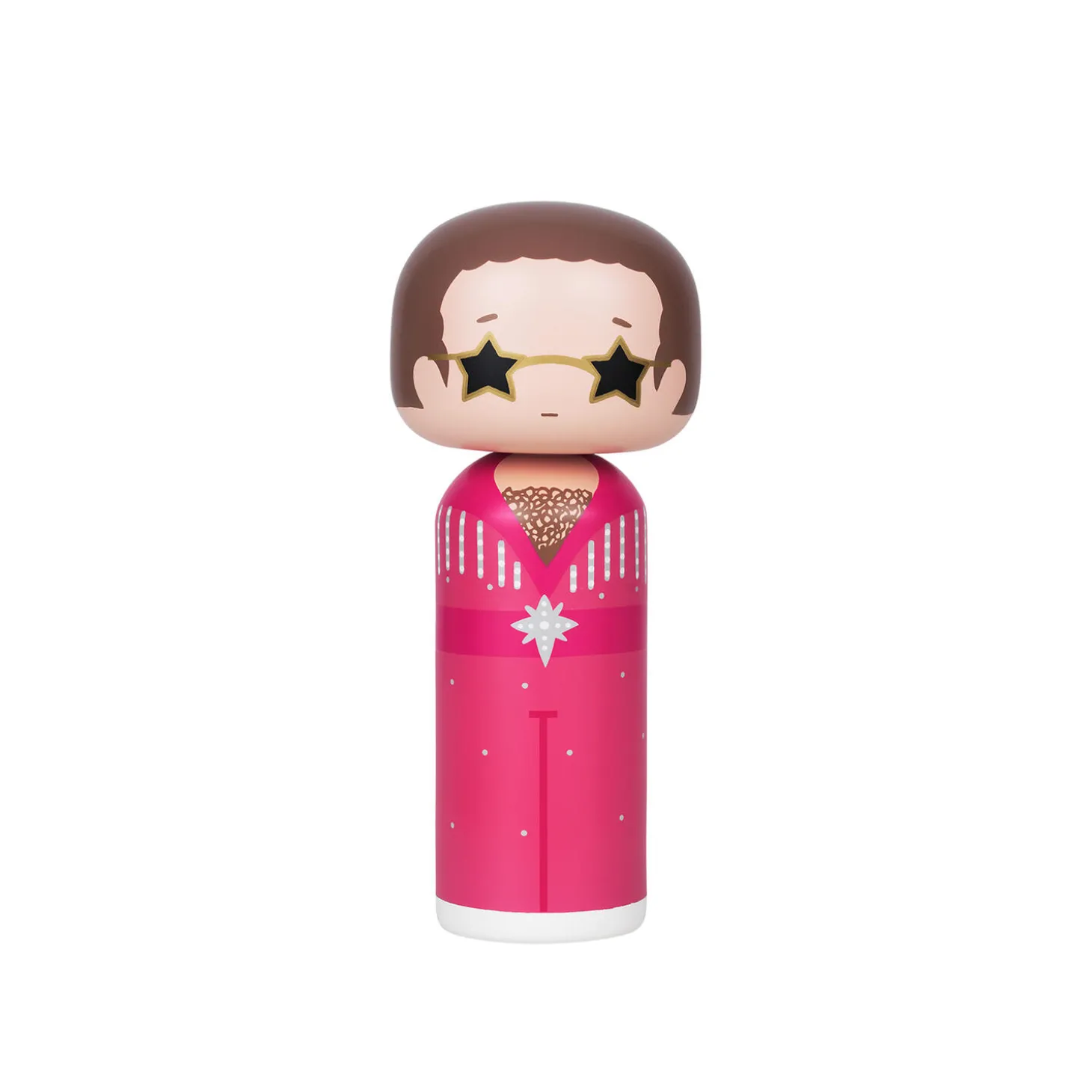 Elton Kokeshi træfigur i håndmalet Schima Superba træ fra Lucie Kaas. Farve: pink. Mål: H: 14,5 cm. Design: Becky Kemp.