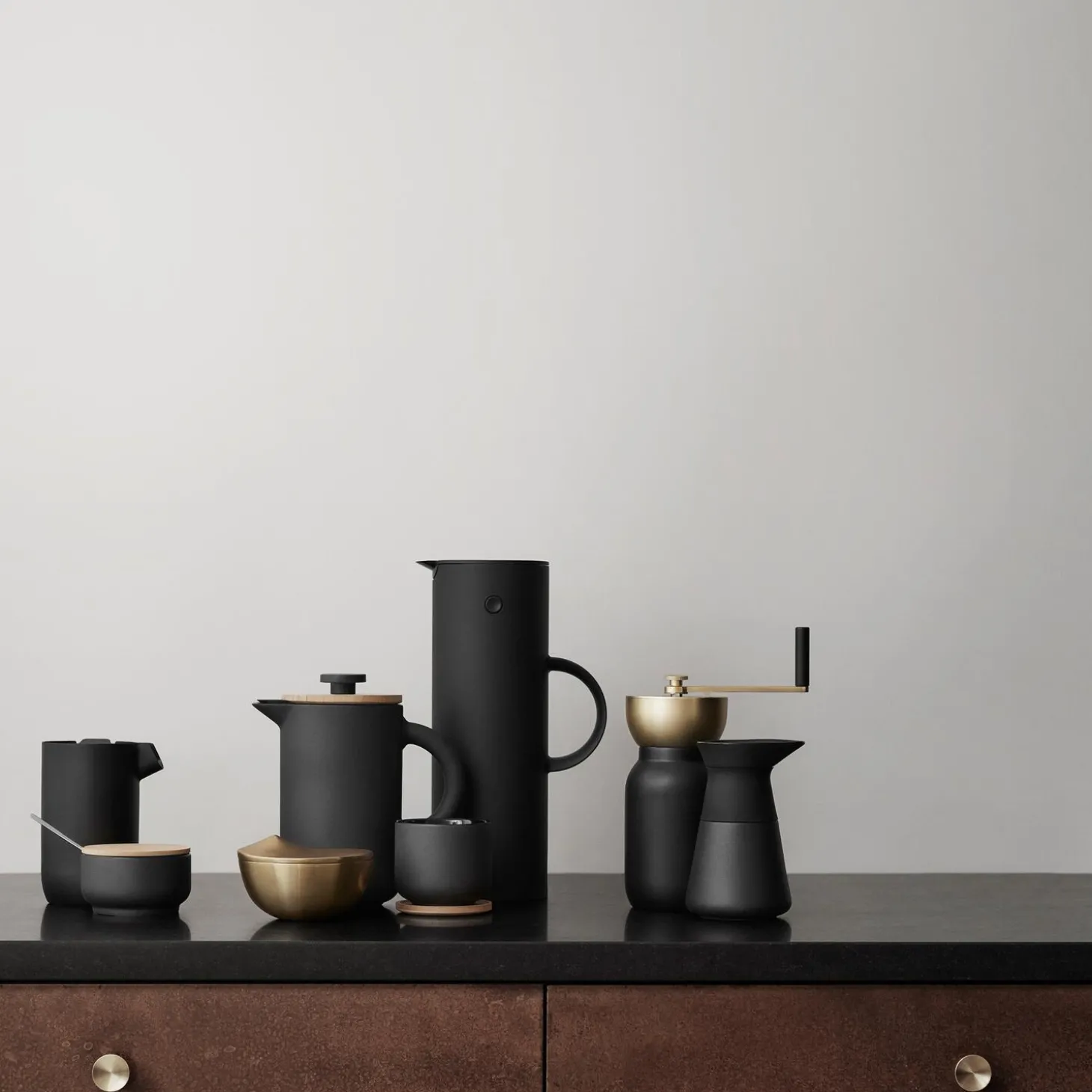 EM77 termokanden er et verdenskendt designikon produceret i Danmark siden 1977 og fremstillet i mere end 100 forskellige farver. Den stilrene termokande er kombinationen af lige dele perfekt form og funktionalitet, og er i dag repræsenteret på designmuseer verden over. Indvendig har EM77 en glasindsats, som holder væsken varm eller kold i timevis. EM77 er designet til at holde hele livet, da alle dele kan udskiftes, hvis de skulle gå i stykker. På den måde forlænges kandens levetid til gavn for miljøet. Med kanden medfølger en unik vippeprop samt et skruelåg, som fungerer perfekt til udflugter eller picnic i det fri.