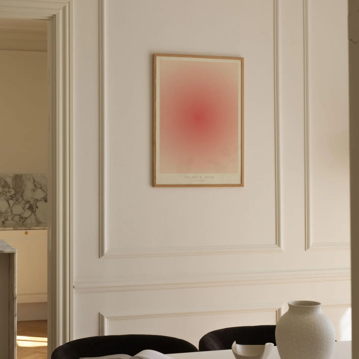 Kunstplakaten: “ENCOURAGED” af kunstnerne Mie & Him er en grafisk illustreret plakat der er kurateret af Peléton. Det har været betydningsfuldt for dem, at plakaten står til fri fortolkning. Farven rød symboliserer lidenskab og energi – den opfordrer os til at handle.