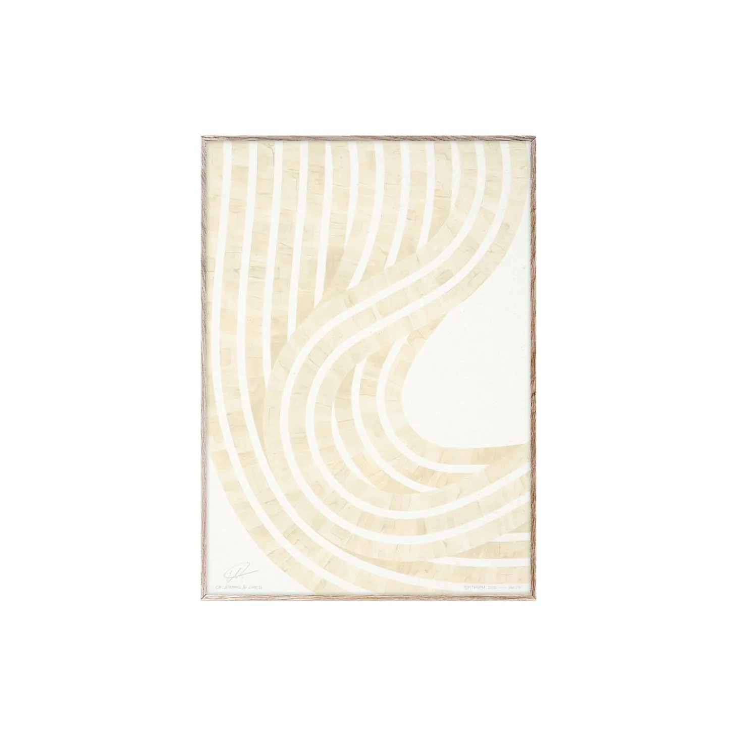 Entropy Sand 01 forms part of an ongoing exploration into the wavelength of colours, in this case sand or beige. Stemming from the artists background in science and architecture, Jelena Donko’s work uses colour at a conceptual level to describe movement – the motion of a certain wavelength. Expressed through the use of acrylic paints on heavy, textured watercolour paper, texture is created by deliberate adjustments in the fluidity and transparency of the relationship between these two mediums. Jelena Donko for Paper Collective. An art print/poster manufactured in Denmark from environmentally certified materials and production.