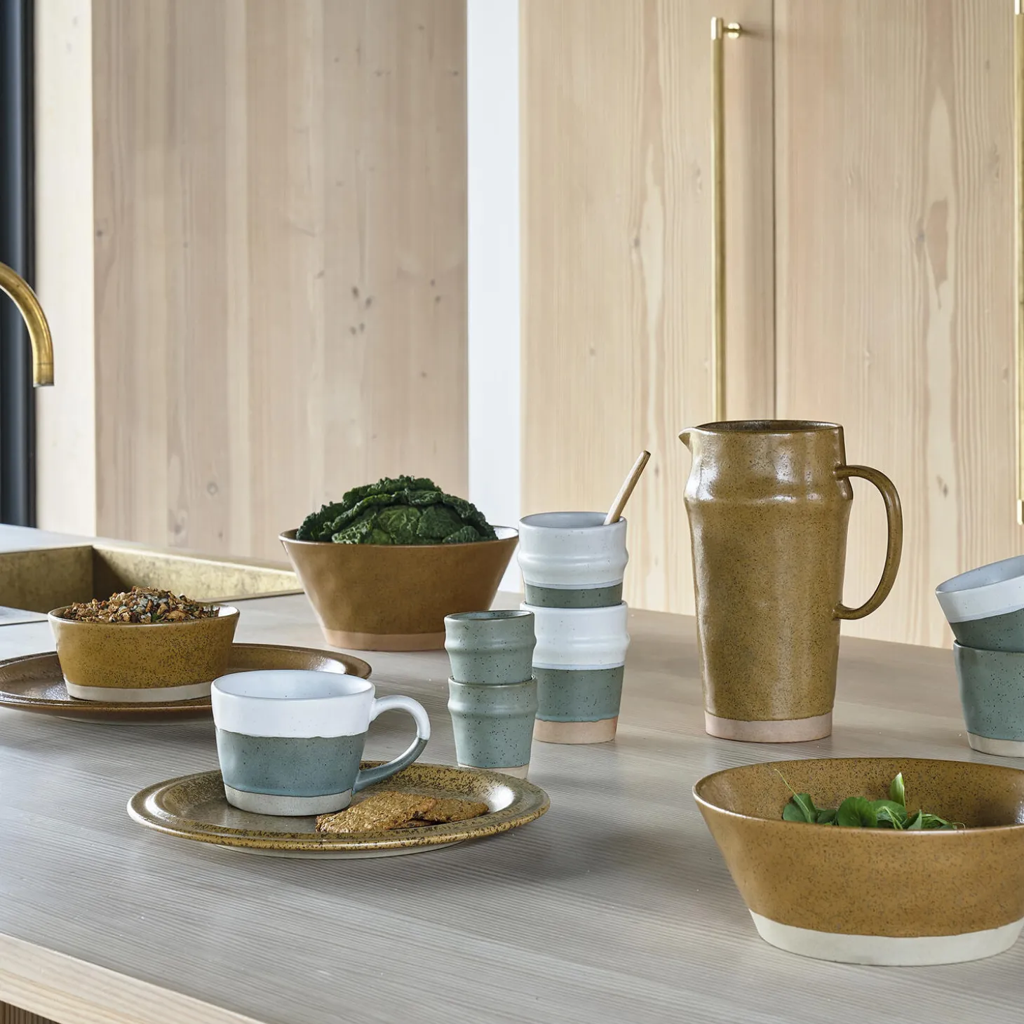 Flot serveringsskål i porcelæn med en smuk, reaktiv glasur. Skålen har et fantastisk udseende med en unik overflade, da hvert enkelt produkt er hånddekoreret, og derfor kan farve og overflade variere. Den er ideel til servering af skønne salater, lækre kartofler og meget mere. Når du gør noget ud af serveringen, kommer maden til sin ret.