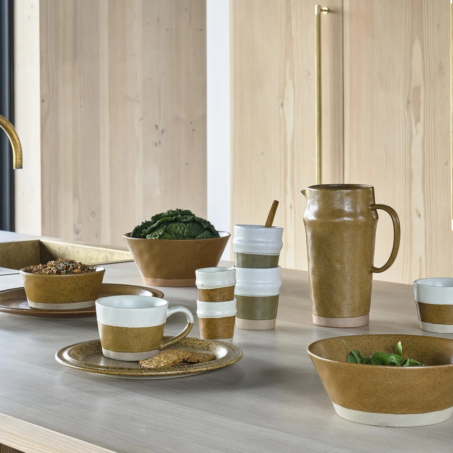Flot serveringsskål i porcelæn med en smuk, reaktiv glasur. Skålen har et fantastisk udseende med en unik overflade, da hvert enkelt produkt er hånddekoreret, og derfor kan farve og overflade variere. Den er ideel til servering af skønne salater, lækre kartofler og meget mere. Når du gør noget ud af serveringen, kommer maden til sin ret.