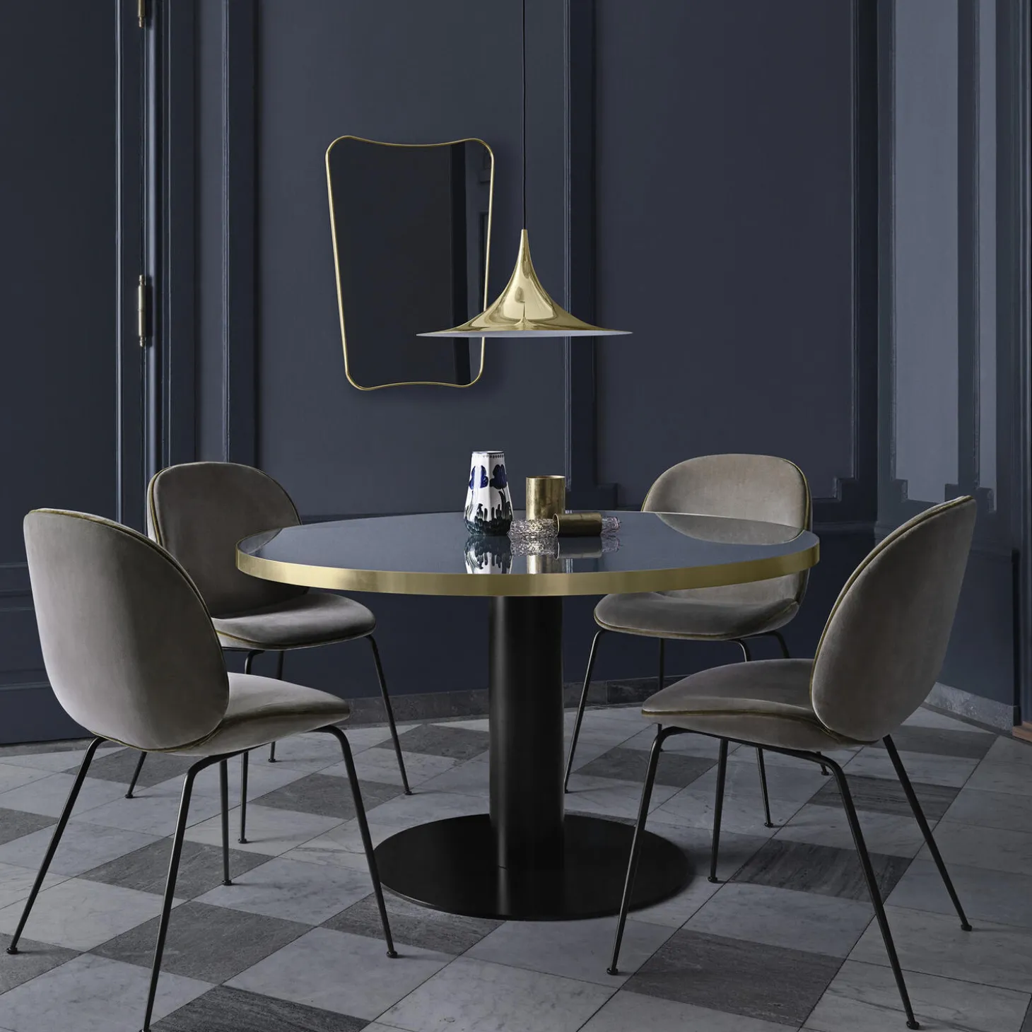 - Materiale: poleret messing og spejlglas