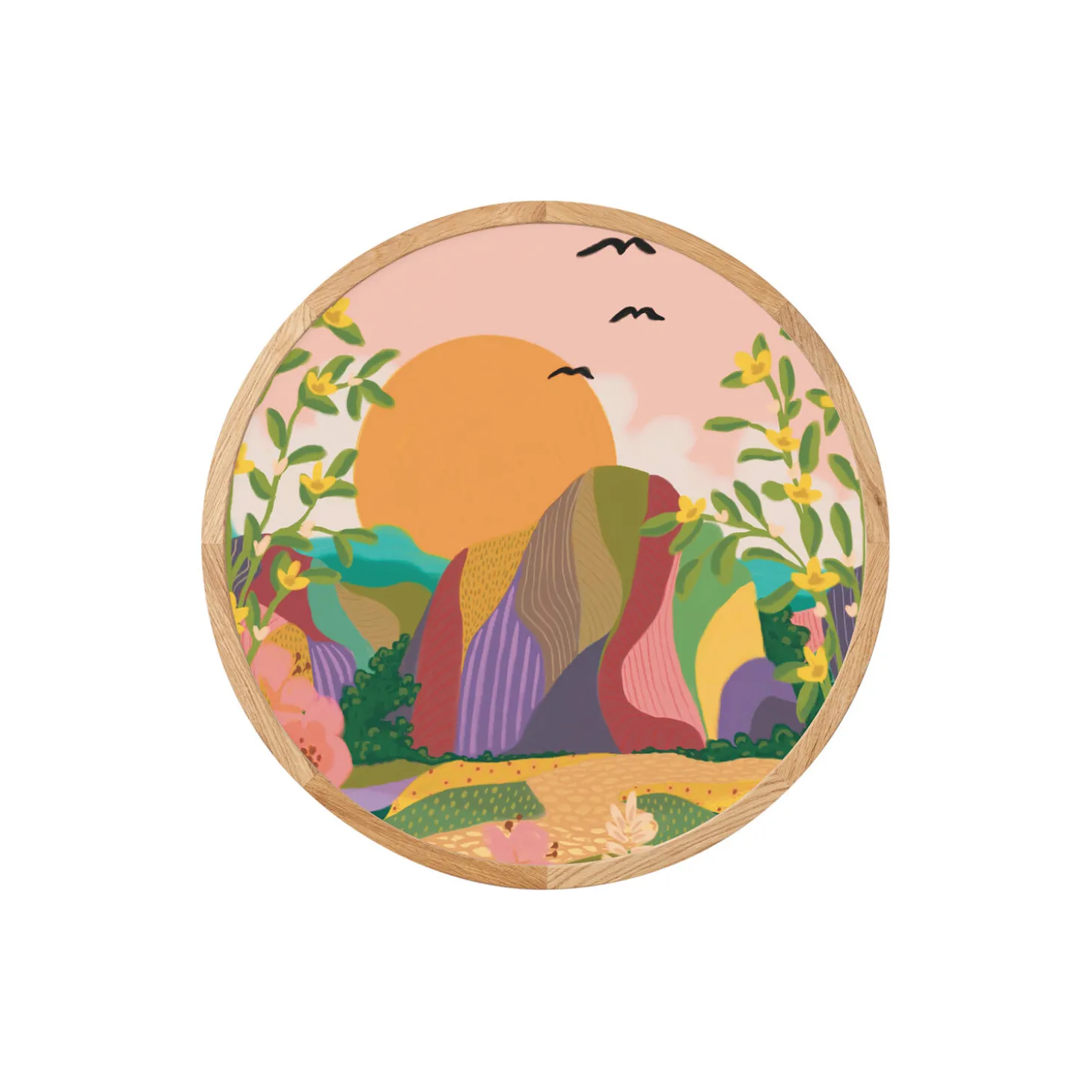 - Materiale: håndlavet cirkulært kunsttryk i egetræsramme