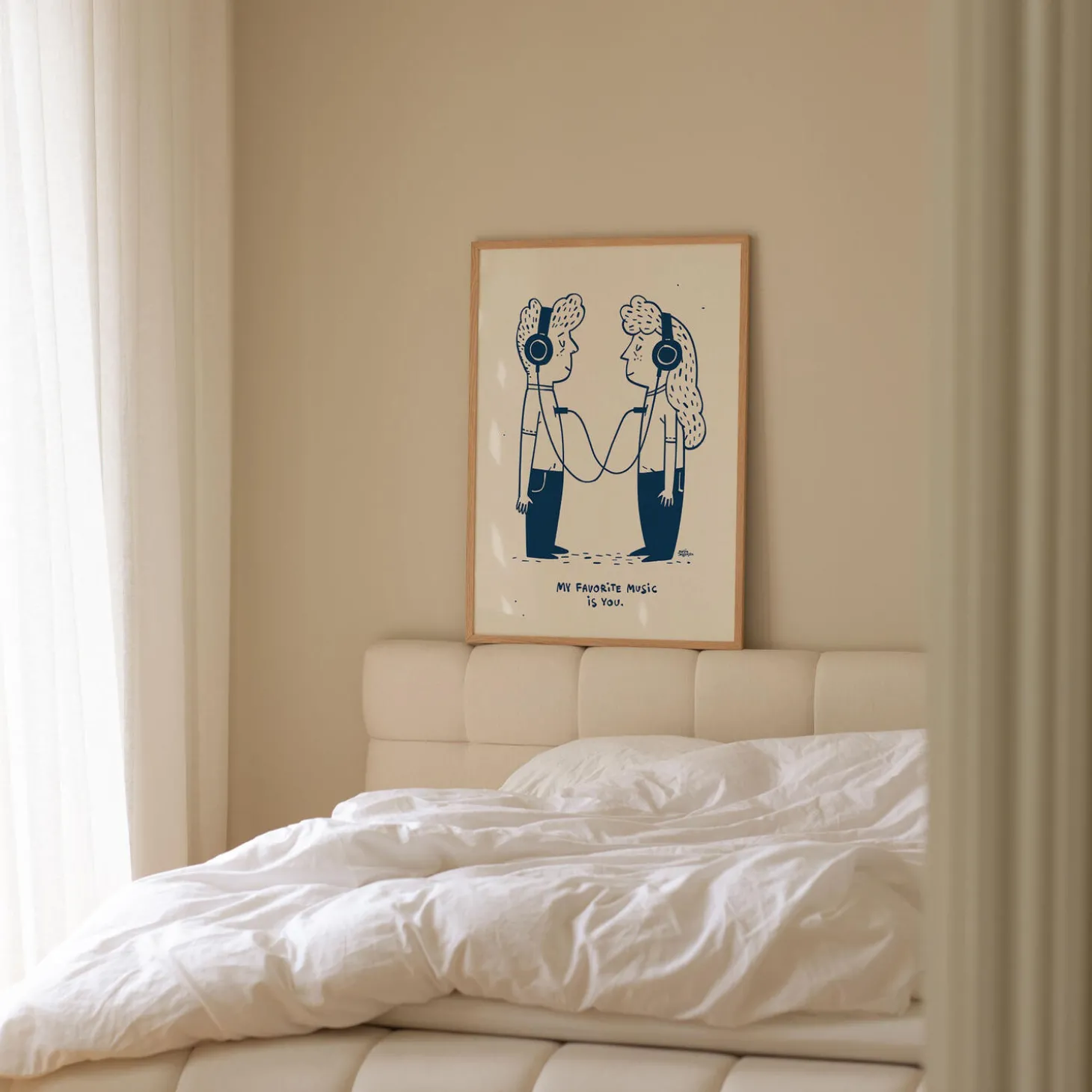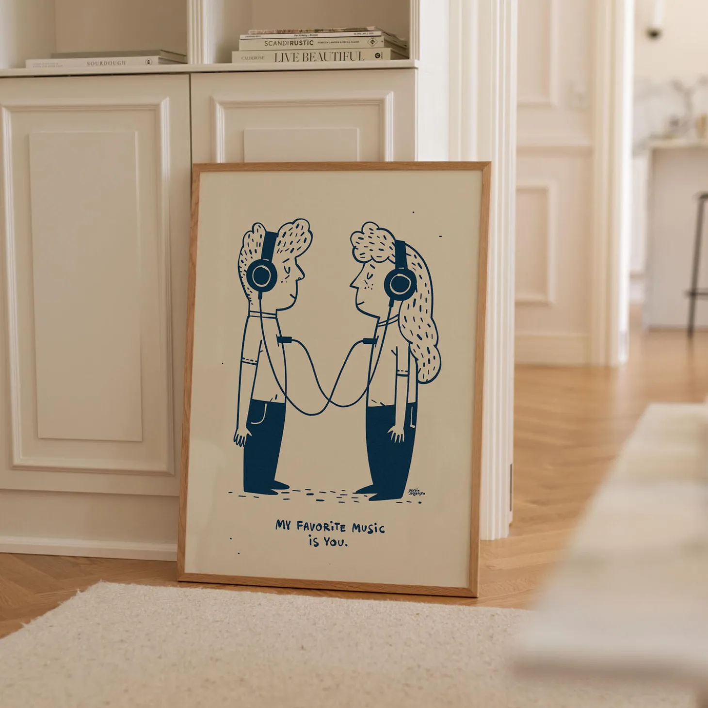Kunstplakaten: “Favorite music” af kunstneren Martin Jørgensen er en illustreret plakat der er kurateret af Peléton. Det har været betydningsfuldt for Martin Jørgensen, at plakaten står til fri fortolkning.