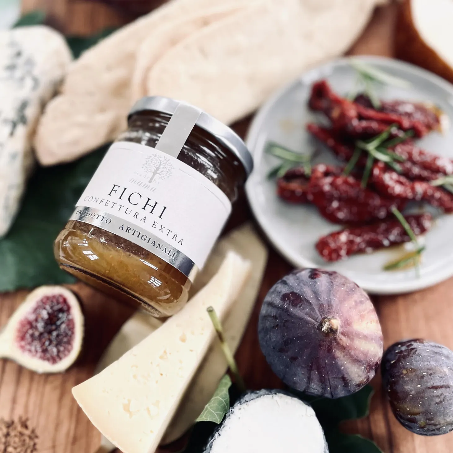 Vores lækre figenmarmelade, naturligvis lavet på italienske figner, rene råvarer og uden kunstige tilsætningsstoffer. Nyd den til ost og godt brød