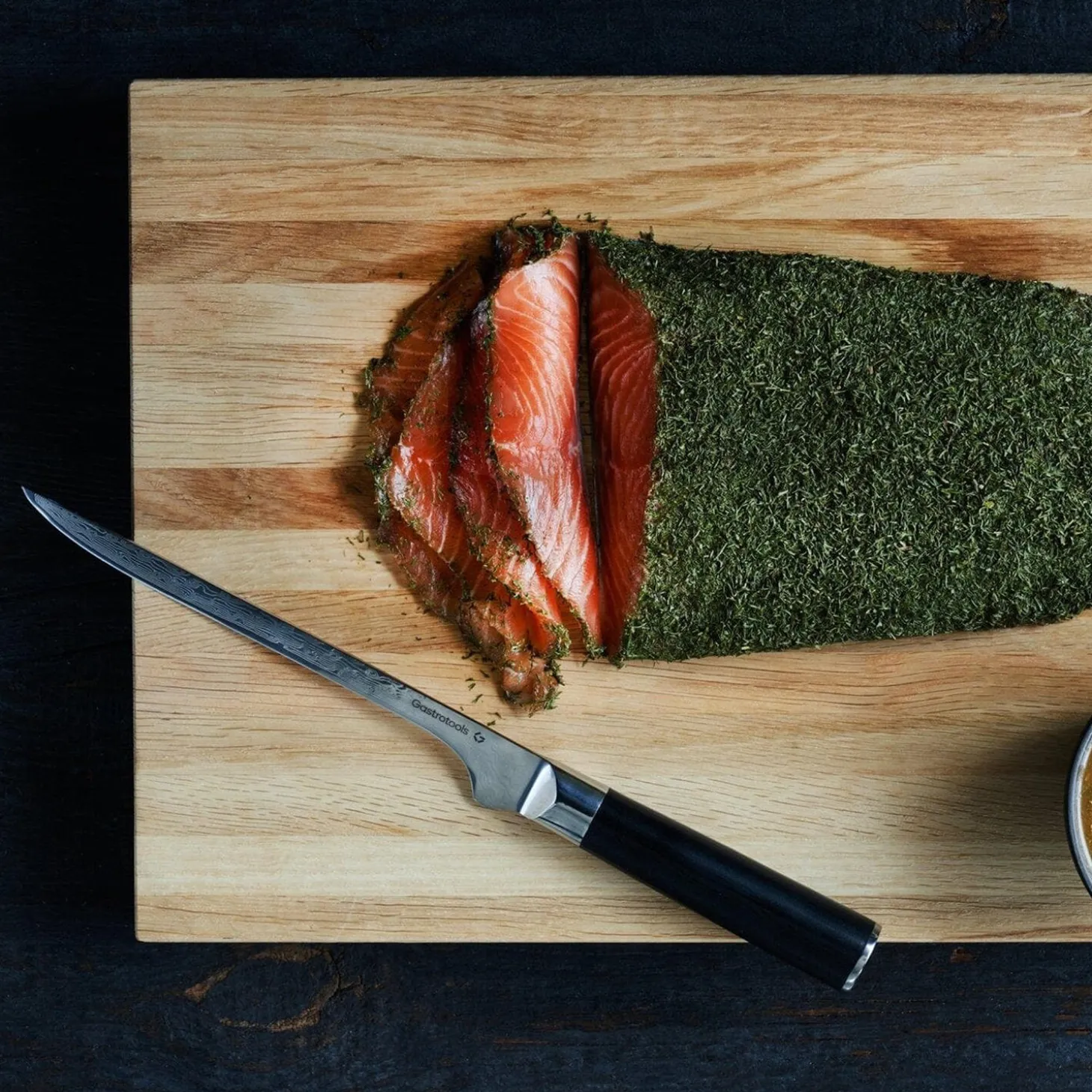 Filetkniven fra Gastrotools gør det lettere at filetere fisk takket være det fleksible og smalle blad, som gør det muligt at følge fiskeben og skære fileten fra hurtigt og nemt. Du kan også bruge filetkniven til afpudsning af kød eller udbening af fjerkræ. Kniven er skabt i 67 lag japansk stål med en kerne af VG10, hvilket resulterer i en hårdhed på hele 61 HRC. Det giver dig en utrolig skarp kniv, som også holder sig skarp længere og kræver mindre vedligeholdelse. Med knivens balance og ergonomiske skæfte i G10-komposit får du et køkkenværktøj, som gør arbejdet både let og behageligt. Brug og pleje: Vask op i hånden og tør af med det samme. Brug gerne et keramisk strygestål til daglig vedligeholdelse.