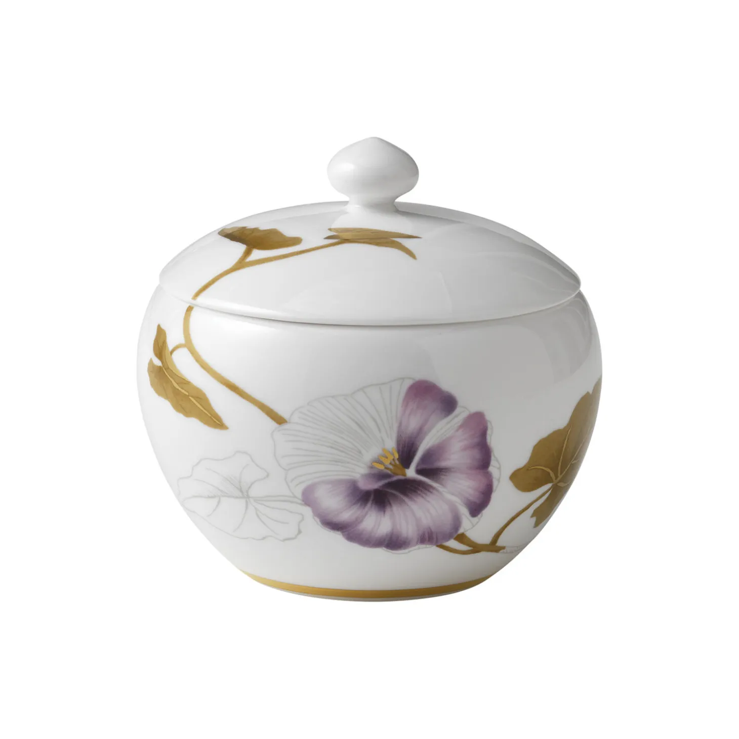 Flora sukkerskål med snerle motiv i porcelæn fra Royal Copenhagen. En yndig snerle snor sig omkring denne charmerende Flora Sukkerskål med låg på 35 cl. Blomsten er skiftevis afbilledet naturalistisk og tegnet op med sirlige streger, som bryder med skålens romantiske udtryk. Skålen nyttig til søde sager og små ejendele.
