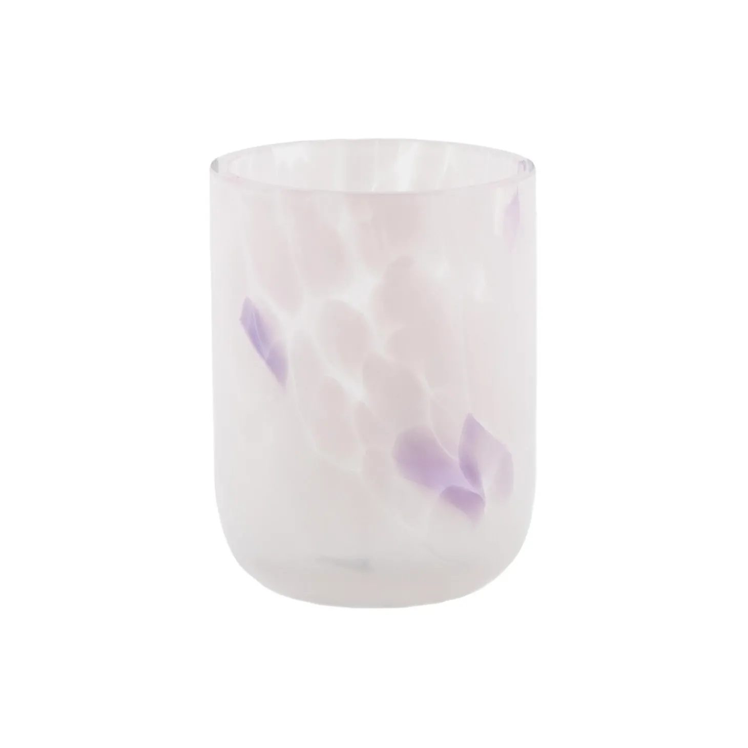 Vores Flow Tumbler med et mønster af små dråber kan både indeholde kolde og lune drikke, bruges til skriveredskaber, som potteskjuler eller til opbevaring af småting. Hver enkelt glas er mundblæst og afrundet i træform, så selvom alle produkter har sin egen unikke og varierende farve og mønster, er alle glas samme størrelse.