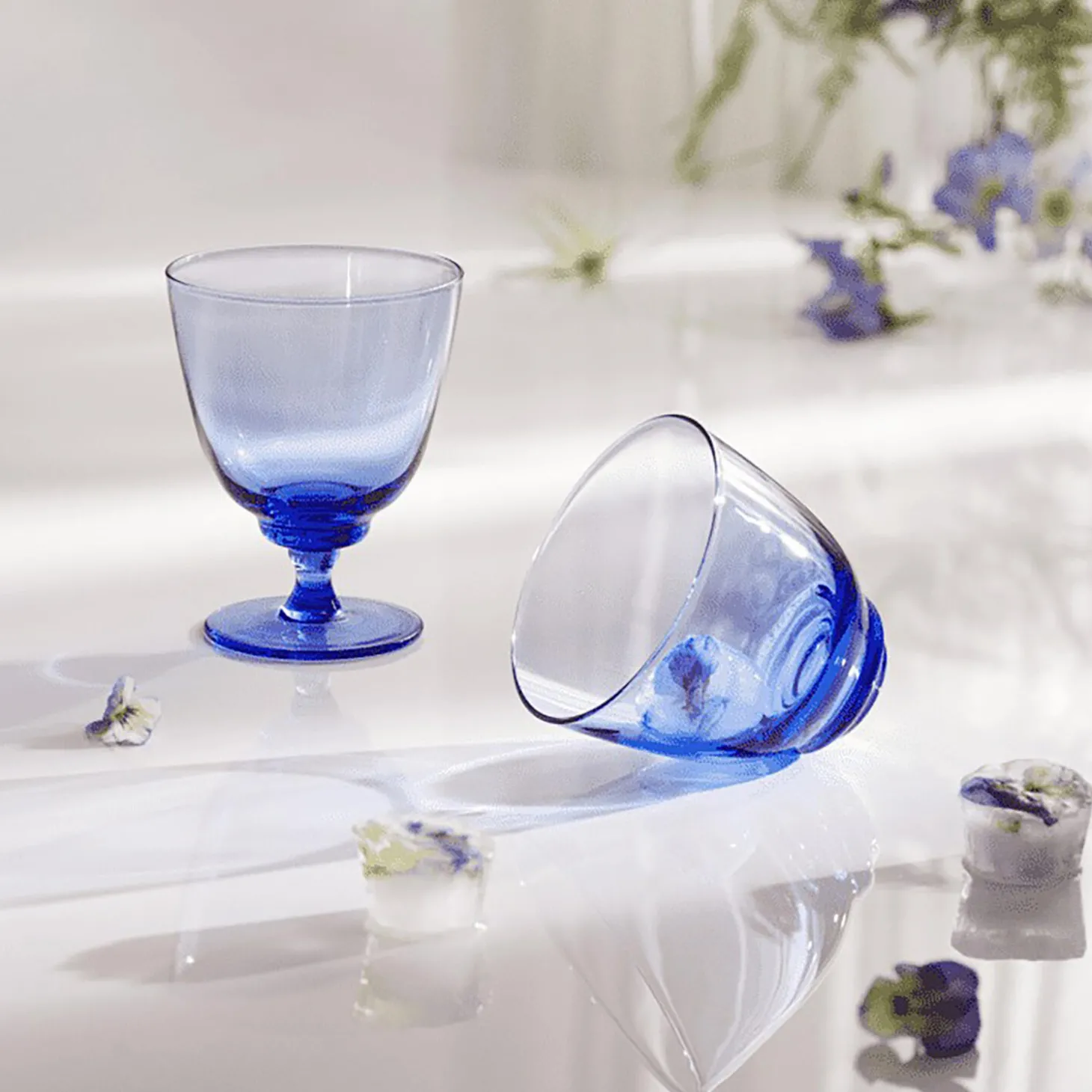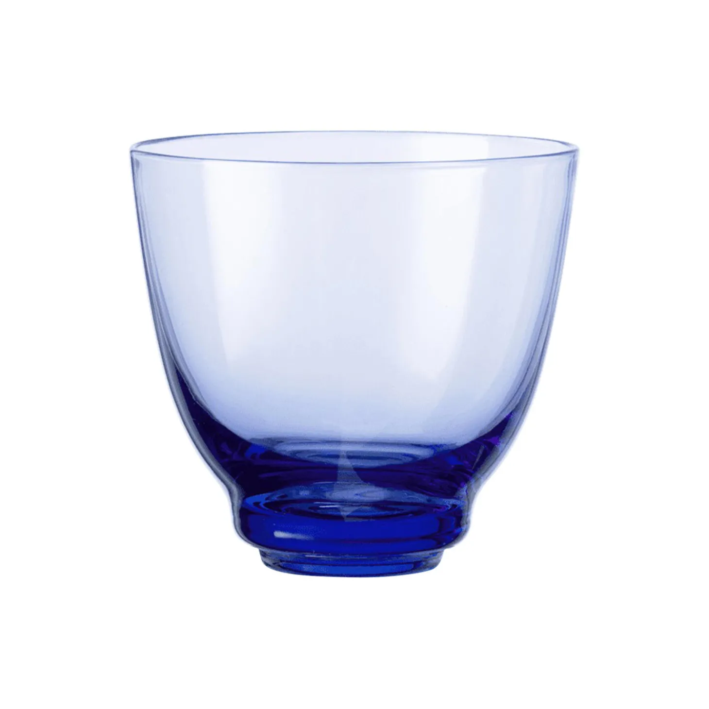 Glasserien Flow giver øjeblikkeligt liv til borddækningen og vækker sanserne på ny. Mundblæst og elegant er serien karakteriseret ved et diskret bølgemønster i bunden, der breder sig som ringe i vandet og tilføjer en organisk og dynamisk følelse til det skulpturelle glasdesign. Vandglasset i mørkeblå rummer 35 cl og skaber et levende og harmonisk udtryk på bordet. Farven på glasset er mest intens i bunden, hvor rillerne er, men har en transparent karakter – også der hvor farverne er stærkest. De nye mørkeblå glas kan sagtens stå alene eller måske endnu mere oplagt – bruges i kombination med de andre farvede glas i serien. Smukt kvalitetsglas fra Holmegaard er for alle og er skabt til at blive brugt – også i hverdagen – og vandglasset har en dejlig tyngde i bunden, der gør, at det både står stabilt på bordet og ligger godt i hånden, selvom foden snævrer lidt ind. Som en unik håndværksmæssig feature er kanten på Flow-glasset flammepoleret, hvilket giver en flot afrundet kant, der også gør glasset ekstra behageligt at drikke af.