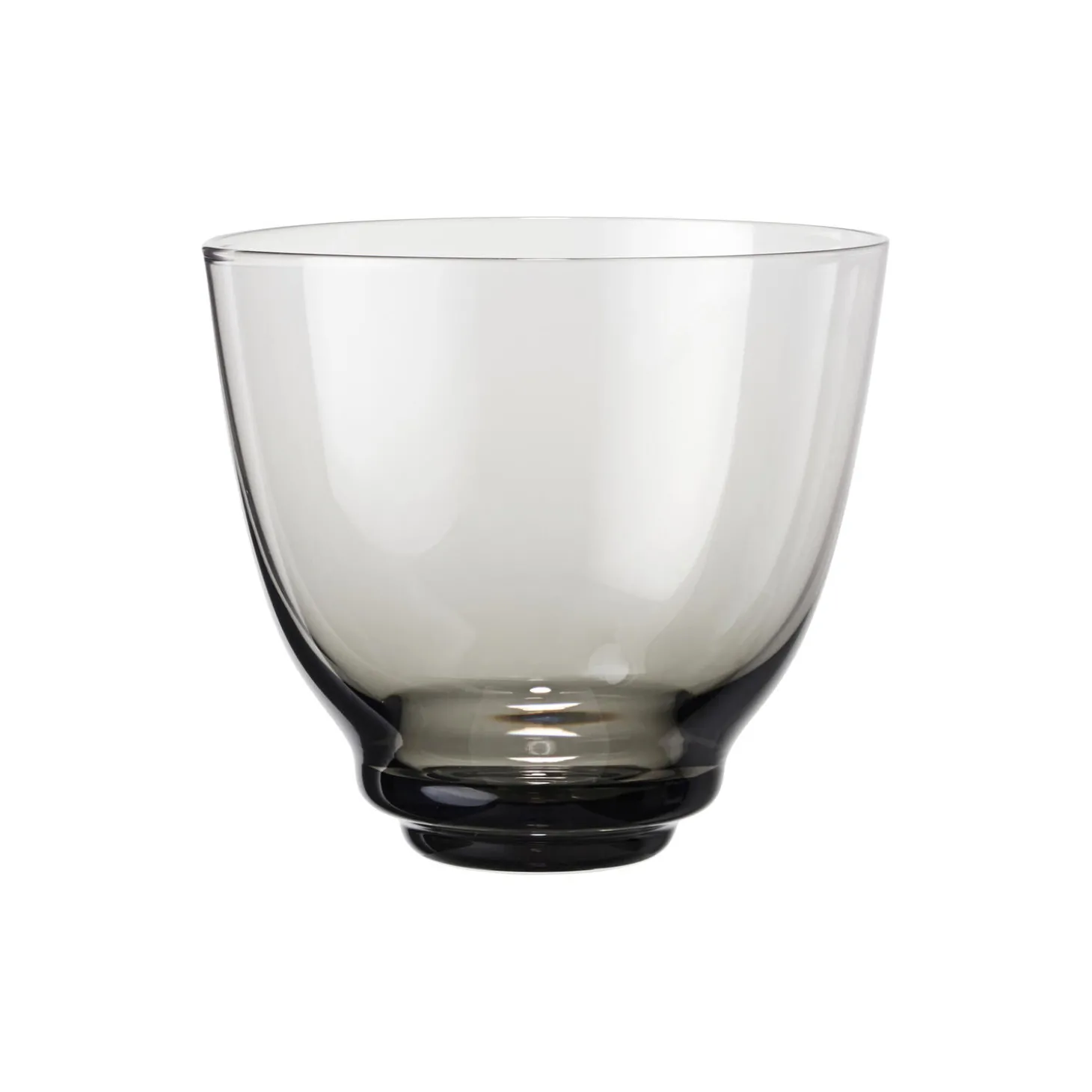 Sæt kulør på hverdagen med en verden af glas i smukke farver. De smukke farver i Holmegaard-serien Flow giver øjeblikkeligt liv til borddækningen og vækker sanserne på ny. Glassene har en klassisk form og er designet med et diskret bølgemønster i bunden inspireret af ringe i vandet. Flow-vandglasset i størrelsen 35 cl i farven Smoke har en dejlig tyngde i bunden og sidder godt i hånden. Den flammepolerede kant gør glasset robust og behageligt at drikke af, og så kan det mundblæste vandglas stables. Det gør både glasset klassisk og praktisk. Alle glas i Flow-serien er mundblæste, så hvert enkelt er helt unikt. Farven Smoke er en elegant, klassisk glasfarve, der passer til al borddækning og sørger for at skabe balance mellem de mere farverige glas. Find din favoritfarve i Flow-serien, eller bland flere forskellige farver i borddækningen og skab dit helt eget udtryk fuld af personlighed. Tåler opvaskemaskine ved maks. 55 grader.
