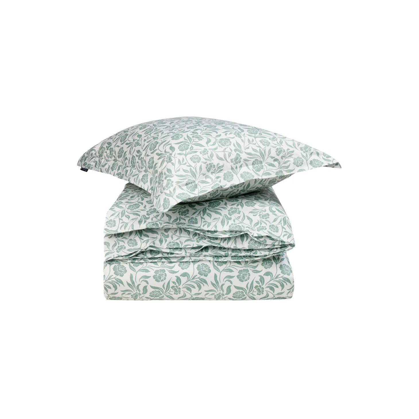 Giv dit soveværelse et løft med Blomster-sengesættet i bomuldssatin i hvid og eukalyptus. Dette luksuriøse sæt har let, skinnende og superblødt stof med et højt trådantal for en frisk følelse. Den viser et originalt printdesign fra Spring-kollektionen og er Oeko-tex-certificeret for sikre miljøvenlige materialer. Dynebetrækket har praktiske logogummiknapper i bunden, og pudebetrækket har en kuvertlukning med en kant hele vejen rundt. Et matchende pudebetræk er tilgængeligt.