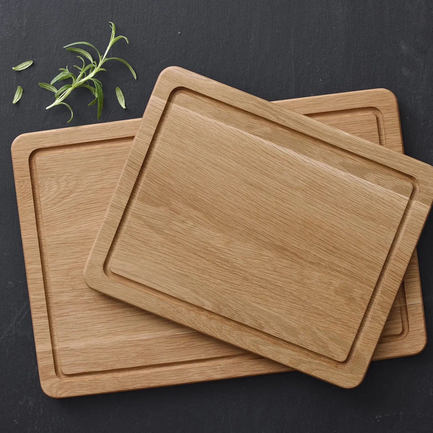 Det smukke og solide skærebræt er fremstillet af olieret eg og har mange anvendelsesmuligheder. Den ene side af skærebrættet er udstyret med en saftrille, der opsamler saft bl. a. fra kød, og den anden side er glat. Begge sider kan anvendes til udskæring og servering. Dette skærebræt er bl. a. velegnet til udskæring og servering af mindre stege samt anretning og servering af tapas. Læg aldrig dit skærebræt i blød. Vaskes med varmt vand og mild sæbe. Tåler ikke opvaskemaskine. Kan med fordel efterbehandles med madolie et par gange om året. Design: Hans Sandgren JakobsenVaren er produceret i FSC®-certificeret egetræ (FSC-C166612).