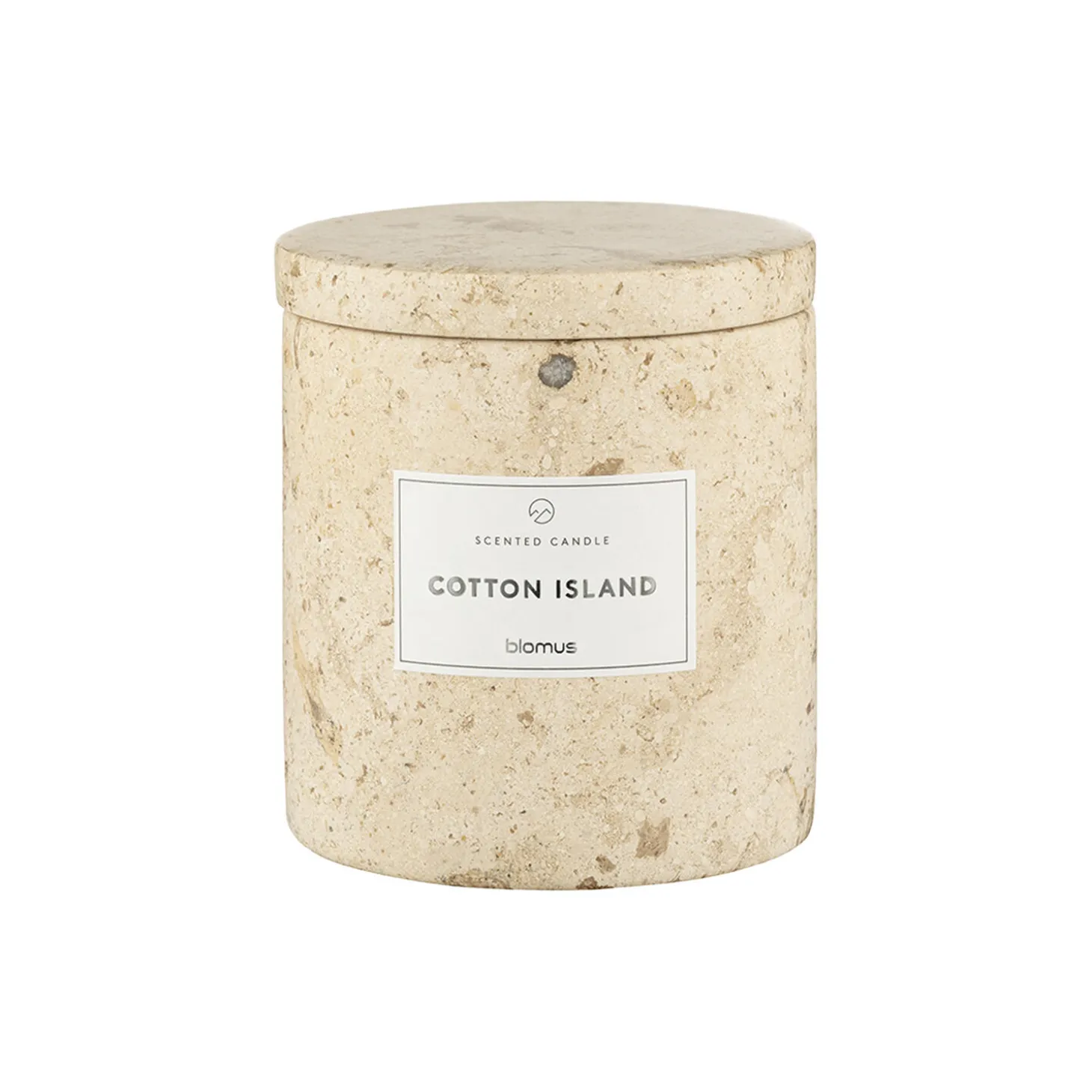 Travertine – a unique limestone, formed by the slow interaction of minerals and spring water, is a timeless jewel of nature. Travertine is characterised by its porosity, which gives it an unmistakable texture.Marble – a symbol of timeless elegance and aesthetics. The noble natural stone, moulded by the power of the earth and time itself, embodies luxury and sophistication in a unique way and has fascinated people for thousands of years. The natural stones are not only an aesthetic statement, but also a sign of durability and quality. The new FRABLI scented candles replace their predecessor FRABLE and add refill candles in aluminium containers to the collection of already familiar fragrances. This means that the marble and travertine containers with a matt finish can be used both as long-lasting scented candles and as storage containers once the candle has burnt out. The scented candles contain selected aroma compositions with a subtle and long-lasting scent and are made from soya wax. They contain no palm oil, burn with very little soot and are environmentally friendly. Cotton Island: The light breeze takes us away and makes us dream of a holiday by the sea. The sweet scent of lily of the valley is rounded off with a squeeze of lemon and a shade of white musk. This way a wonderfully sweet and herbal fragrance arises, that makes us think of freedom and purity. Available in other colours, fragrances and sizes.