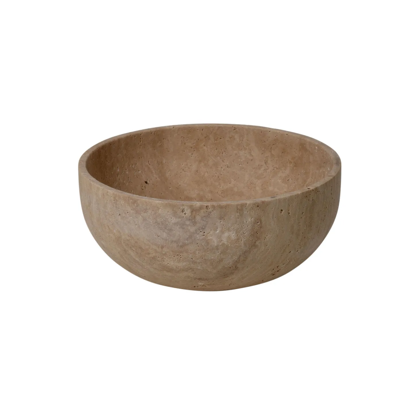 Den karakteristiske GAEA Skål fra HOEME er den perfekte kulisse til dekorative genstande eller præsenteret i sin rå form. Med sine legende og tidløse mønstre af sandfarvede travertin, skaber GAEA Skålen en symbiotisk harmoni i minimalistisk indrettede køkkener eller som central placering på dit spisebord.