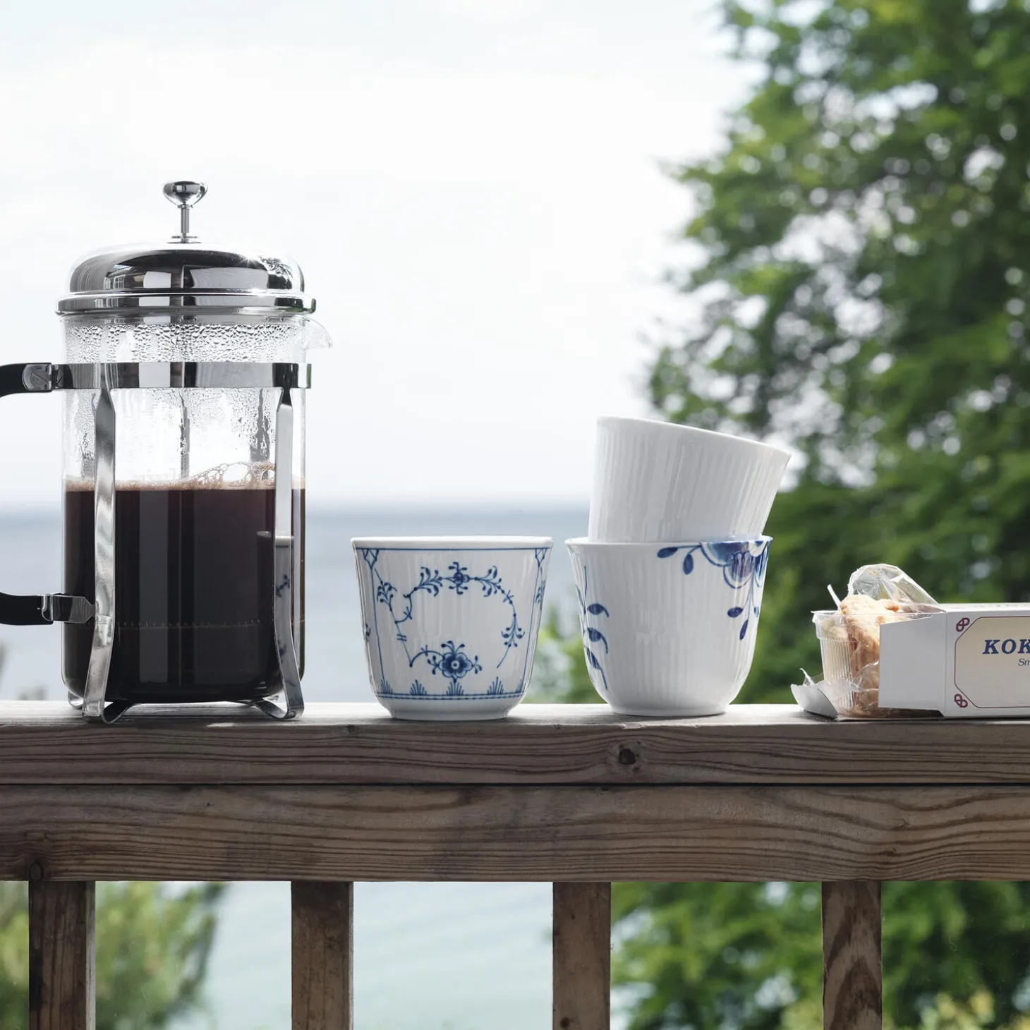 Gifts With History krus i porcelæn fra Royal Copenhagen. Dette smukke gavesæt bestående af tre termokopper giver en introduktion til klassiske og kontemporære udtryk fra Royal Copenhagen. De tre termokopper på 26 cl er håndmalet med mønstrene fra Musselmalet Riflet og Blå Mega Riflet, mens termokoppen i Hvid Riflet står i sin ubemalede skønhed. Sættet er en oplagt gaveidé eller en særlig tilføjelse til en personlig samling af Royal Copenhagen.