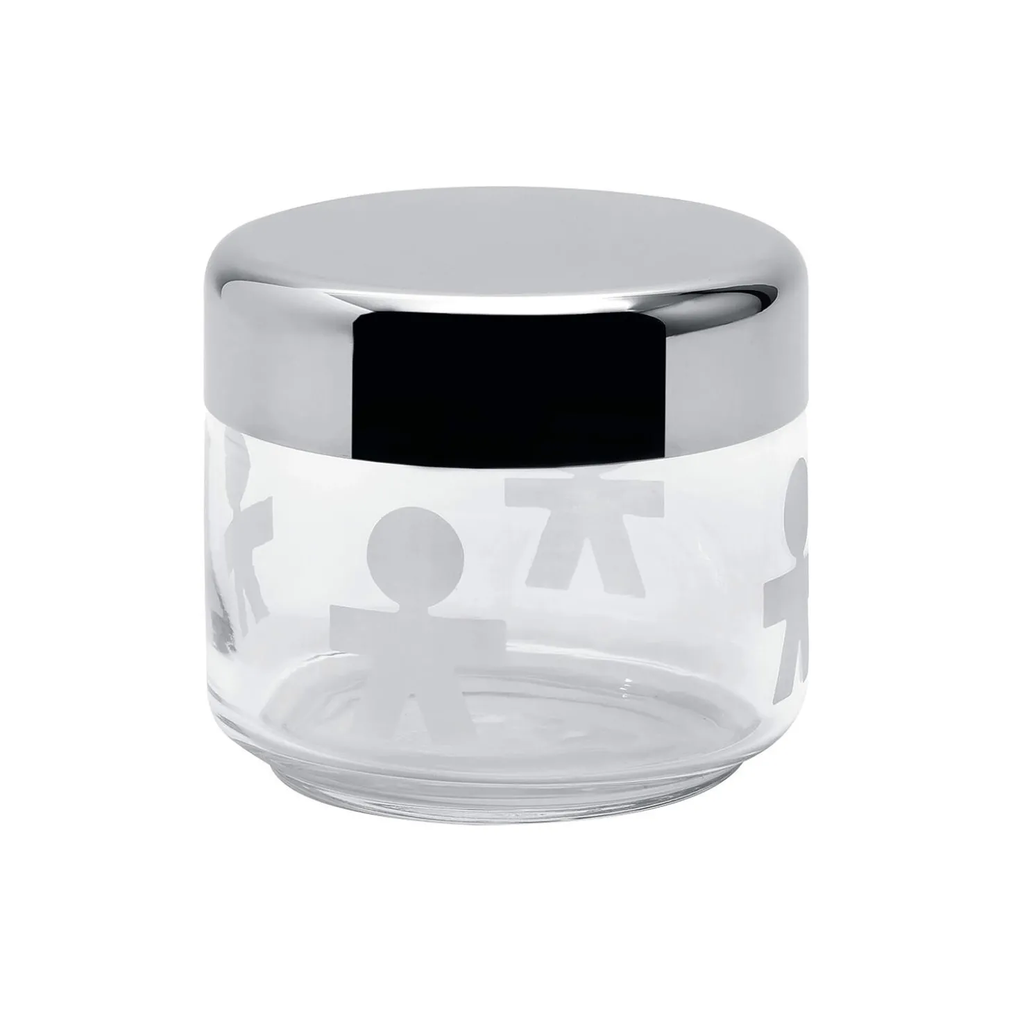 Girotondo opbevaringsglas i glas og rustfrit stål fra Alessi. Farve: klar. Mål: H: 9,3 x Ø 10,5 cm. Indeholder: 50 cl. Design: King-Kong.