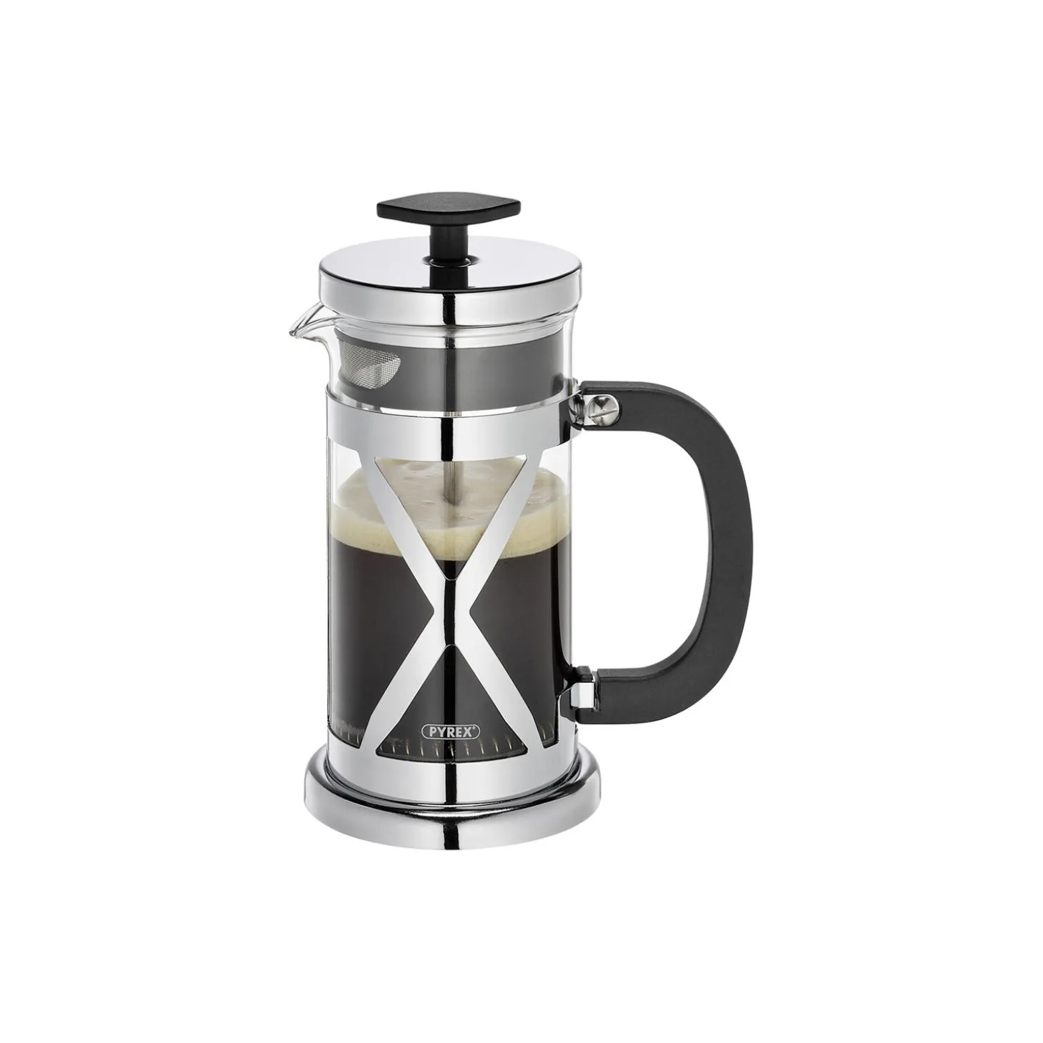 Fyld kanden lavet af varmebestandigt borosilikatglas med groftmalet kaffepulver. Hæld derefter varmt, ikke længere kogende vand over og læg låg på gryden. Efter en udbløvningstid på mindst fire minutter trykkes langsomt filterstangen ned. Færdig! Du kan transportere kaffemaskinen sikkert med det generøse håndtag