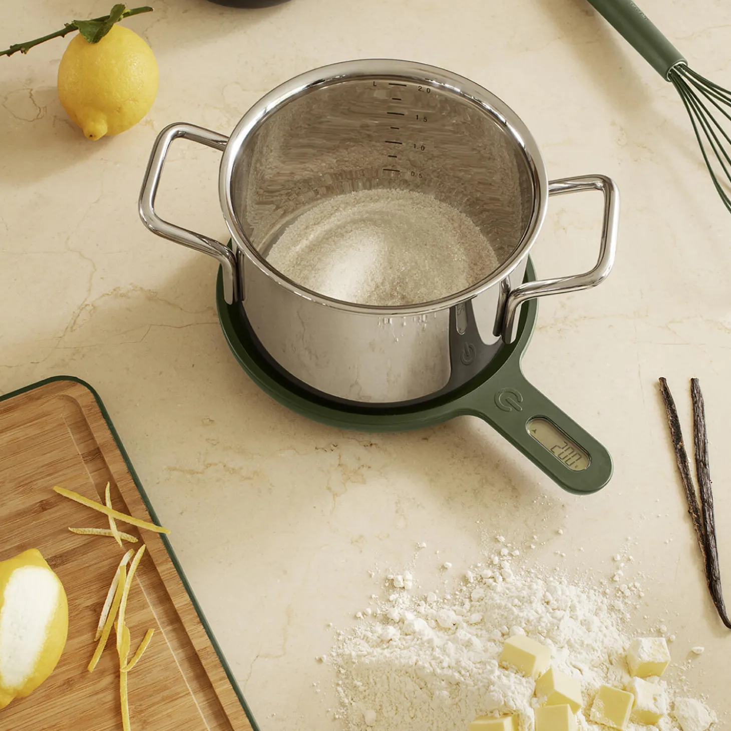 Praktisk køkkenvægt med flere smarte funktioner. Et display i håndtaget sikrer, at vægten nemt kan aflæses, uanset størrelsen på den gryde eller skål, der skal bruges. Gummifødder får vægten til at stå ordentligt fast på køkkenbordet. Vægten måler i både g, lb, oz og ml. og har nulstillingsfunktion. Med en tykkelse på blot 3 cm. fylder vægten minimalt i køkkenskuffen. 2 x AAA-batterier er inkluderet.Vægten måler op til 10 kg med 1 grams interval.