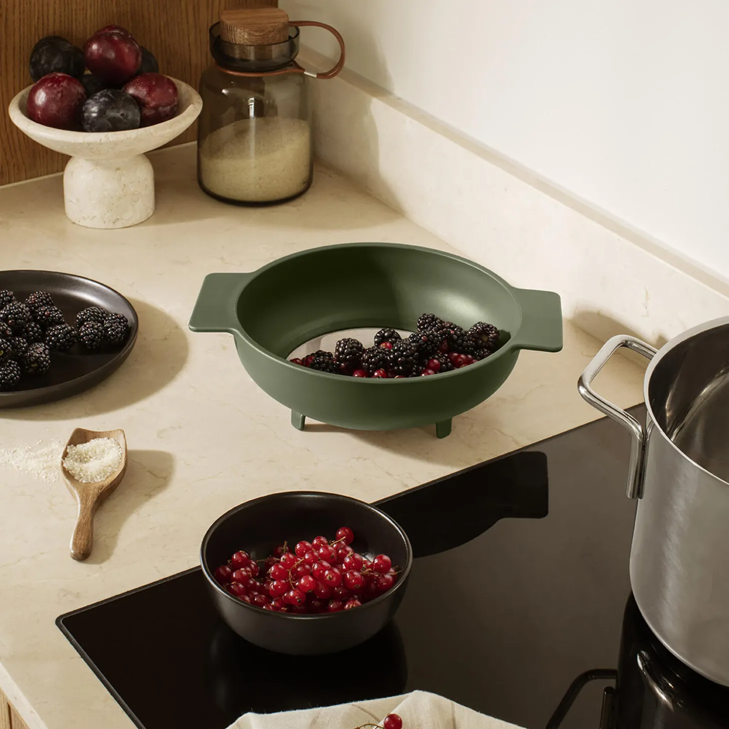 Finmasket sigte med mange anvendelsesmuligheder, både som si, sigte og dørslag. Sigt f.eks. mel, kakao og flormelis til det fineste pulver og si saucen – eller skyl frugt og grønt og hæld vand fra pastaen. Sigten står stabilt på fire fødder og har to praktiske håndtag. Passer til gryder i str. Ø16, Ø20 og Ø24 cm.