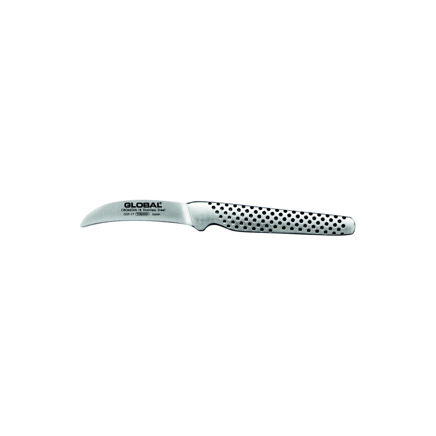 GSF-17 urtekniv i Cromova 18 stål fra Global. Hårdhedsgrad: hærdet 56-58 HRC. Længde 6 cm. Design: Komin Yamada.