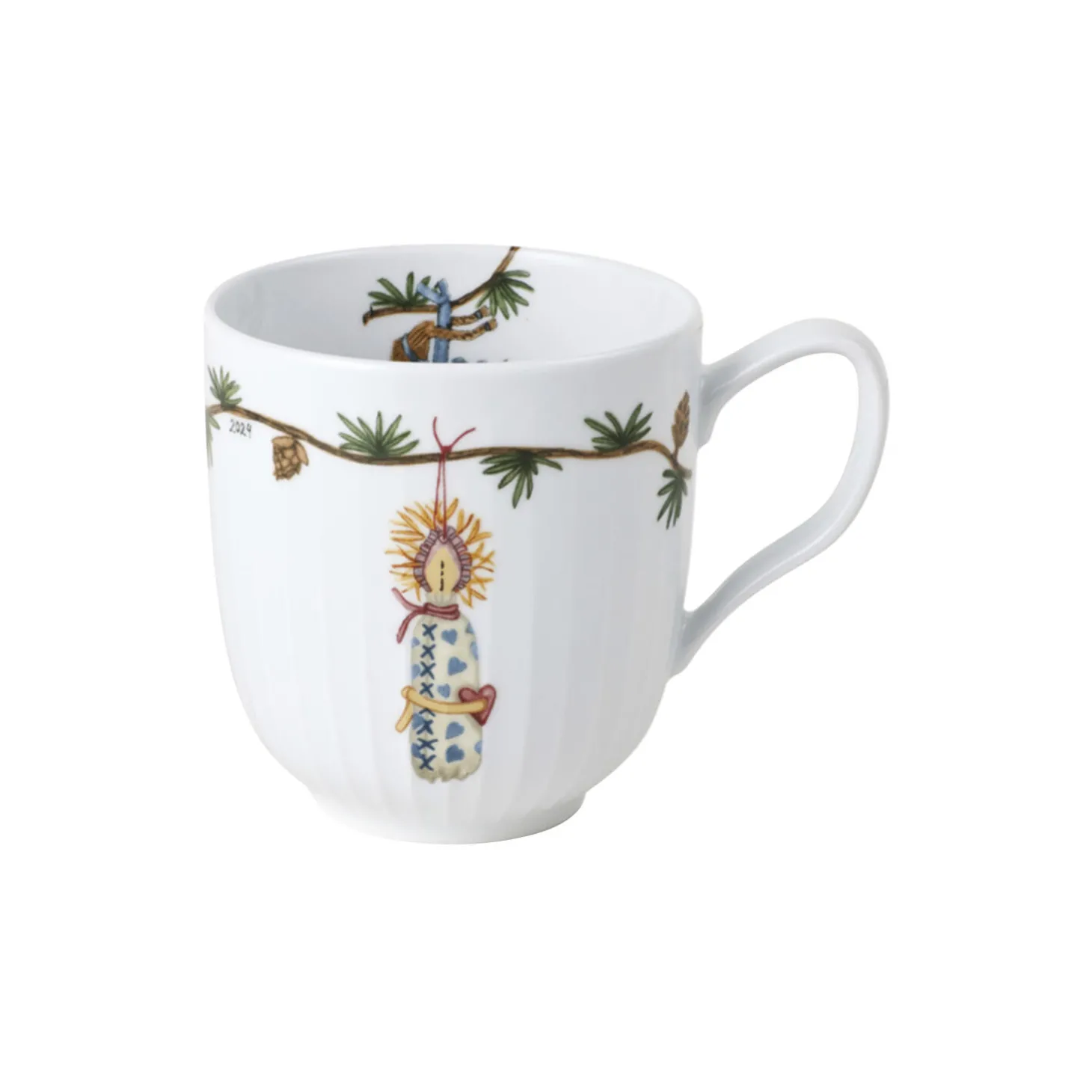 Kähler hylder julens særlige nostalgi og traditioner og inviterer med det både klassiske og moderne julestel Hammershøi Christmas os alle ind i julens magiske og fredfyldte univers. Julekruset 2024 fra Hammershøi Christmas er med sine 33 cl perfekt til julens varme drikke, lige fra den traditionsbundne gløgg i løbet af december til aftenkaffen, når roen sænker sig efter julemiddagen. Det er lavet i porcelæn og er dekoreret med en gennemgående lærkegren, der er pyntet med fine, hjemmegjorte ting som pynt i form af tørret æble og en kastanje, en indbydende julekringle med perlesukker og et herligt hjemmesyet julelys, der bringer autenticitet og ægthed ind i julen. Kigger du inden i kruset, har en julebuk i halm gemt sig som en lille overraskelse midt i din gløgg eller julekaffe. De yndige julemotiver er gennem årene skabt af kunstner Rikke Jacobsen, der hvert år tilfører det klassiske Hammershøi-stel designet af Hans-Christian Bauer endnu et strejf af julemagi. I dag rummer Hammershøi Christmas dele nok til en komplet opdækning til alle decembers måltider, fra brunch og frokost til julemiddag.