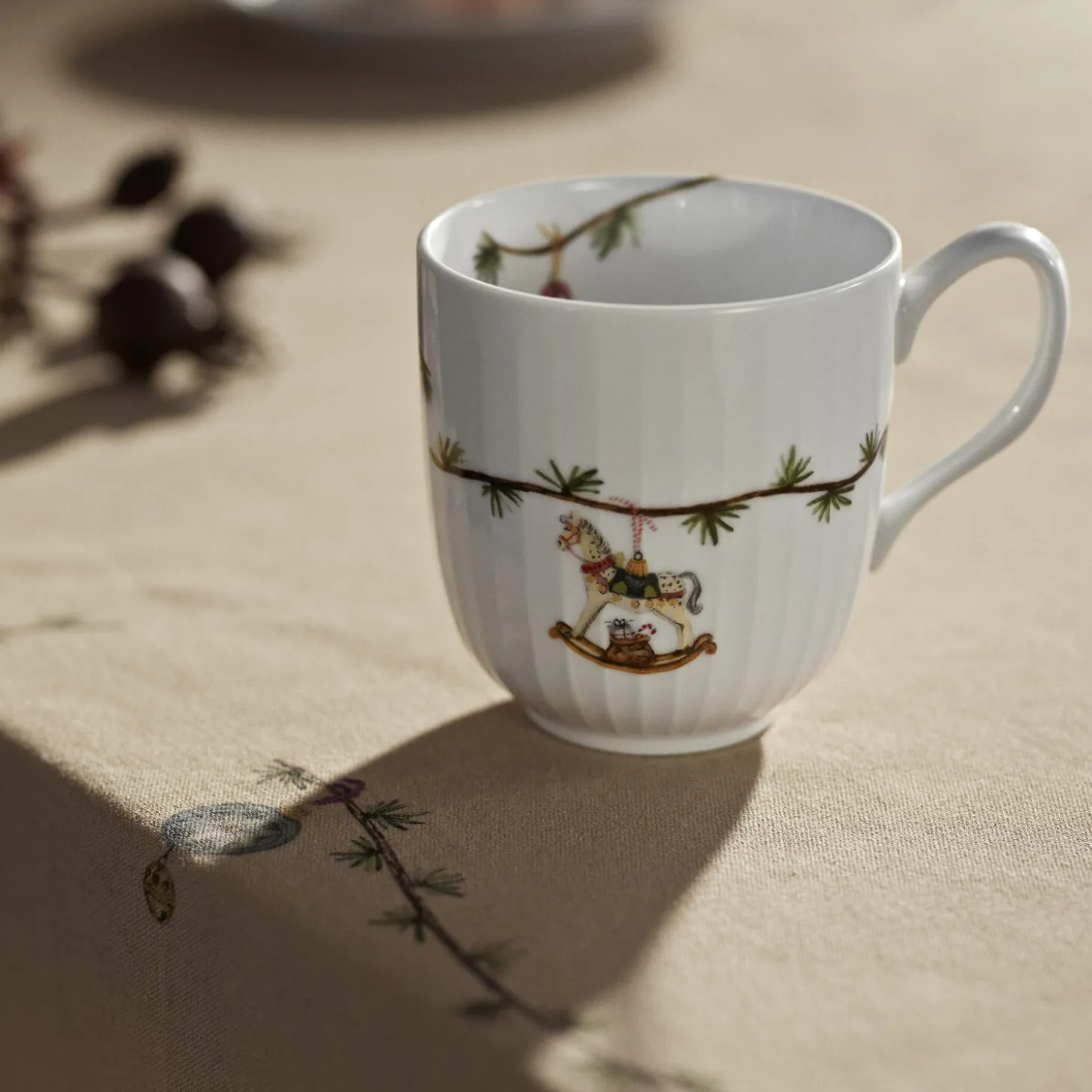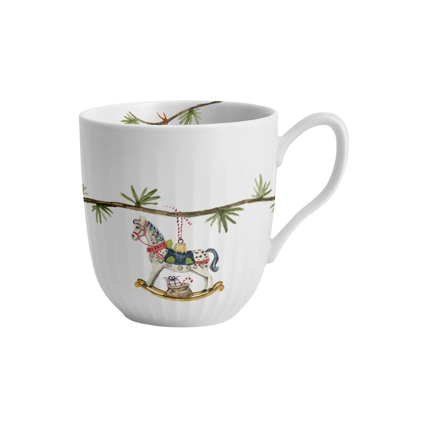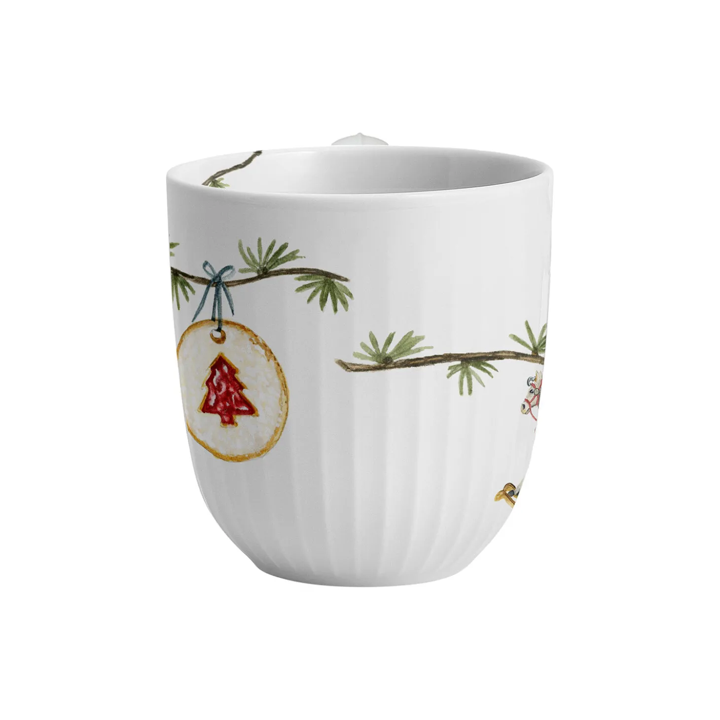 Kähler hylder julens særlige nostalgi og traditioner og inviterer med det både klassiske og moderne julestel Hammershøi Christmas os alle ind i julens magiske og fredfyldte univers formet af tradition. Julekruset 2025 fra Hammershøi Christmas er med sine 33 cl perfekt til julens varme drikke, lige fra den traditionsbundne gløgg i løbet af december til aftenkaffen, når roen sænker sig efter julemiddagen. Det er lavet i porcelæn og er dekoreret med en gennemgående cedergren med lærkekogler, der i år er pyntet med en gyngehest med en sæk fyldt med gaver, en lille juleslikstok, tre kastanjer i snor og en hjemmelavet småkage, der bringer autenticitet og ægthed ind i julen. Kigger du inden i kruset, har en nissedreng med et juletræ i miniatureudgave i hånden gemt sig som en lille overraskelse midt i din gløgg eller julekaffe. Det klassiske Hammershøi-stel designet af Hans-Christian Bauer er indbegrebet af Kählers solidt forankrede designfilosofi, hvor seriens diskrete riller giver alle dele en helt særlig autentisk elegance formet af tradition, mens de yndige julemotiver, der gennem årene er skabt af kunstner Rikke Jacobsen, hvert år tilfører stellet et nyt strejf af julemagi. I dag rummer Hammershøi Christmas dele nok til en komplet opdækning til alle decembers måltider, fra brunch og frokost til julemiddag.