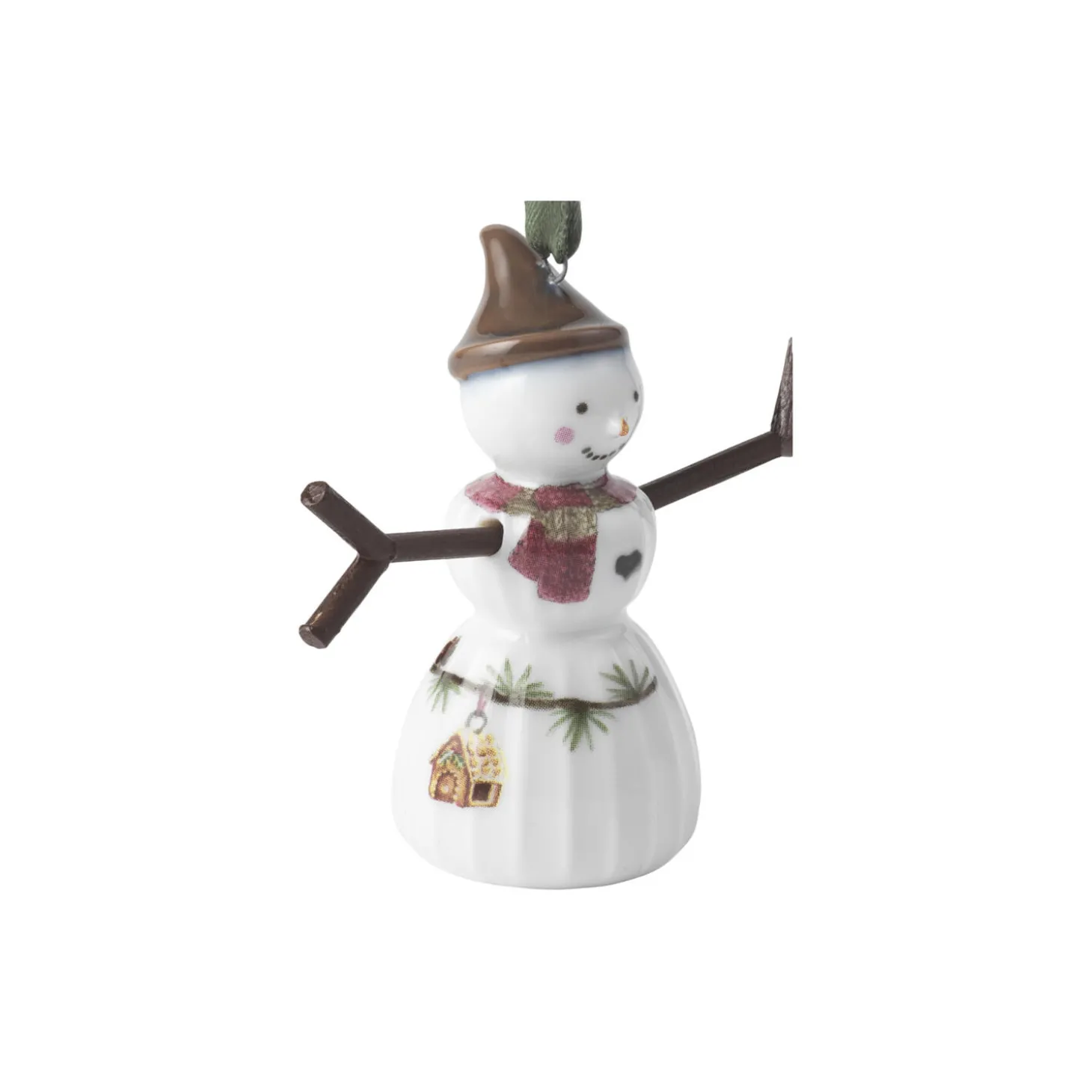 Juletraditioner og håndværkstraditioner i skøn forening. Med familien af snemænd fra Kählers juleserie Hammershøi Christmas bringer du enkelt og autentisk julestemningen ind i boligen med glade smil og hyggelige julemotiver, der matcher seriens øvrige dele og fuldender julehyggen, samtidig med at du kan nyde nostalgien i Kählers håndlavede designtraditioner. Snepigen har en lille charmerende hue på, et varmt halstørklæde og en halskrave, for det er vigtigt ikke at fryse – også selvom man er en snemand. Hun måler 6,5 cm i højden og 3,5 cm i diameter og er udformet i bløde linjer med Hammershøi-seriens ikoniske riller, der kendetegner Hans-Christian Bauers stel og bordpynt. Denne model er den hængende udgave af Snepigen, men du kan også få hende stående. Så der er frit valg. Lad hele familien pynte på juletræet eller på smukke grene i en flot vase eller skab dit eget snelandskab i vinduet, på hylden eller på julebordet. Både den hængende og stående familie af snemænd kommer med små arme i malet træ, der kan tages af og på, men hvorfor ikke gå en tur i haven, parken eller skoven og finde jeres egne små grene, som kan bruges som arme? Måske som en ny, hyggelig juletradition den 1. december. På den måde bliver snemændene endnu mere personlige og betydningsfulde. Kählers snemandsfamilie består af Snemanden, Snekonen, Snedrengen og Snepigen, der alle på forskellig vis er dekoreret med motiver fra Hammershøi Christmas-serien malet i akvarel af Rikke Jacobsen og overført til det snehvide porcelæn. Motiverne er klassiske julemotiver som julehjerter, kræmmerhuse og gaver i en autentisk, hyggelig og håndmalet stil, som man slet ikke kan undgå at komme i den helt rigtige julestemning af.