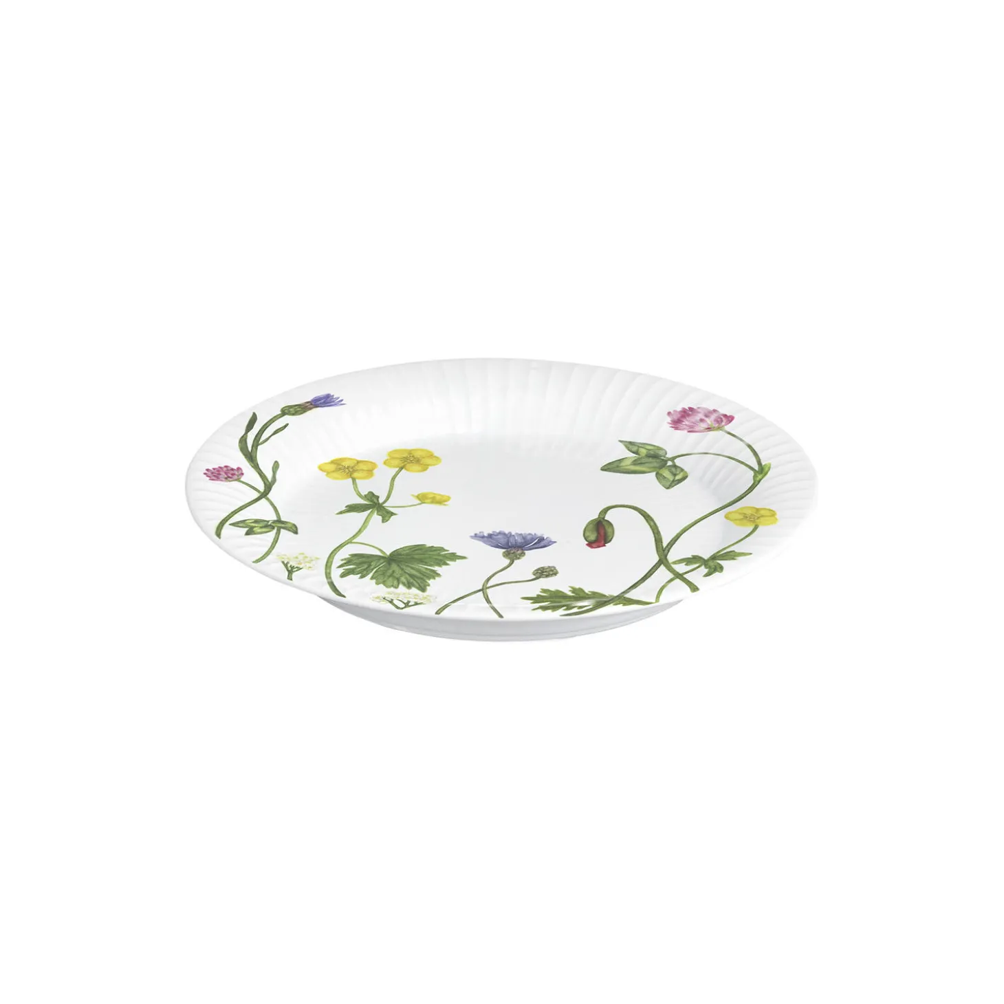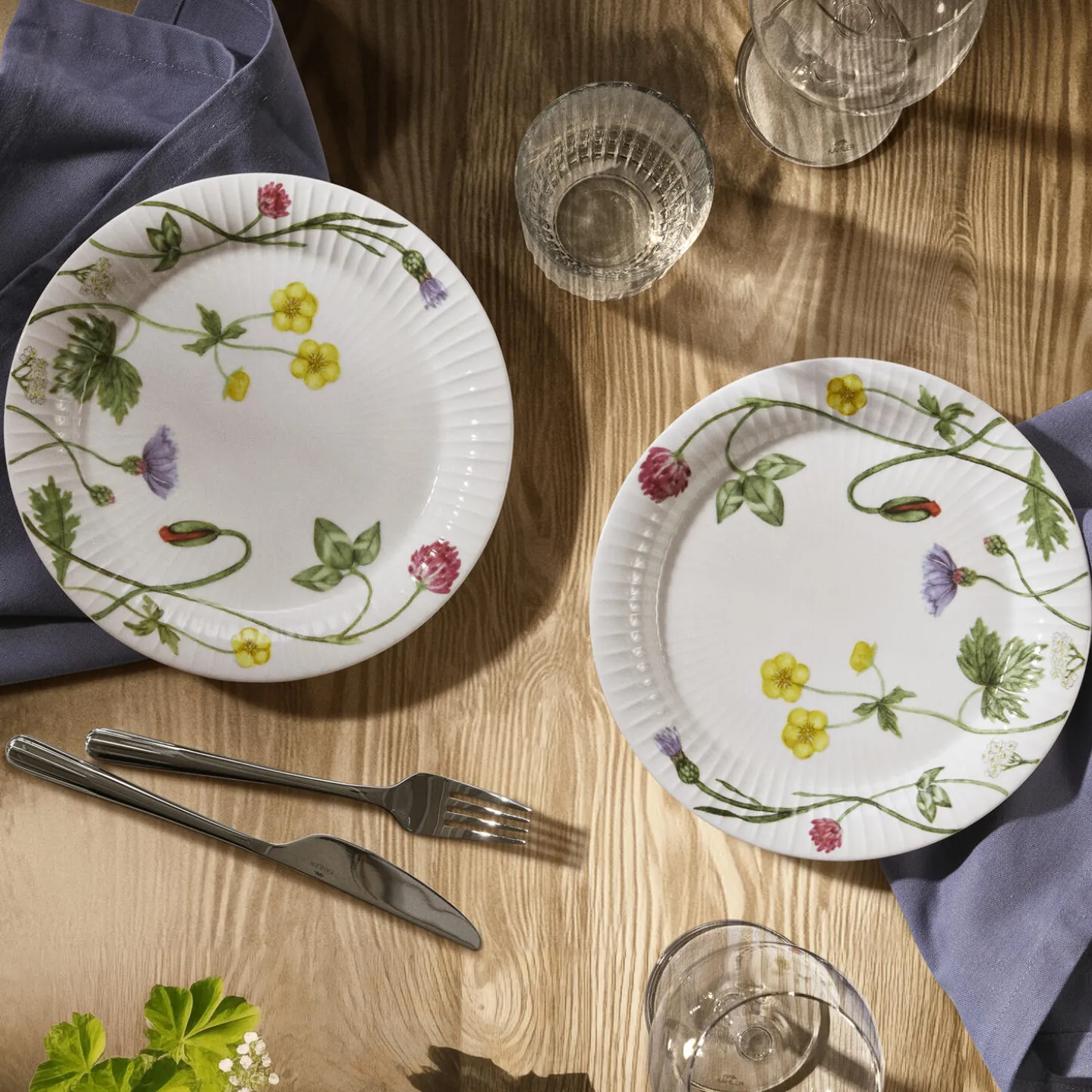 Blomstrende farver, former og følelsen af autentisk sommerstemning. Med Hammershøi Summer fra Kähler kan du næsten mærke solens stråler og den lune sommervind, når du dækker op til kaffe og lidt lækkert på terrassen, altanen eller i sommerhuset. Hammershøi Summer er inspireret af den danske sommers eventyrlige former, farver og følelser, og til 2025-sæsonen har en buket af de smukkeste engblomster fundet vej til den populære serie. Hammershøi Summer-frokosttallerkenen prydet med engblomsttemaet måler 22 cm i diameter og er perfekt til sommerens store kolde bord, uanset om du inviterer til årets fest eller blot ønsker at skabe masser af autentisk sommerhygge på bordet og rundtomkring i boligen. Med Hammershøi Summer og engenes blomster er vi med til at bekendtgøre, at sommeren er over os, ligesom engblomsterne kan minde os om at nyde nuet med deres mangfoldige blomstring, der tit ligger som et tæppe over engen, alt imens de lover atter at blomstre igen de kommende år. Engblomsttemaet er malet på samme måde som de andre temaer i Hammershøi Summer-serien, hvor planter og blomster nærmest bevæger sig uvilkårligt hen over de klassiske riller på de hvide keramikdele. Det er som om de nærmest vokser op, ja, næsten danser hen over porcelænet med deres forskellige asymmetriske retninger. Har du allerede andre dele i Hammershøi Summer-serien, vil tallerkenen været et smukt supplement til de øvrige temaer og fuldende en glad og hyggelig sommerstemning på bordet, samtidig med at du nyder den autentiske nostalgi i Kählers håndlavede designtraditioner. Motiverne er skabt af kunstner Rikke Jacobsen på Hammershøi-stellets eksisterende dele designet af Hans-Christian Bauer. Med sine smukke akvareller skaber hun detaljerige motiver, hvor flora og fauna spiller en gennemgående rolle og indfanger stemningen i naturen og årstiderne omkring os.
