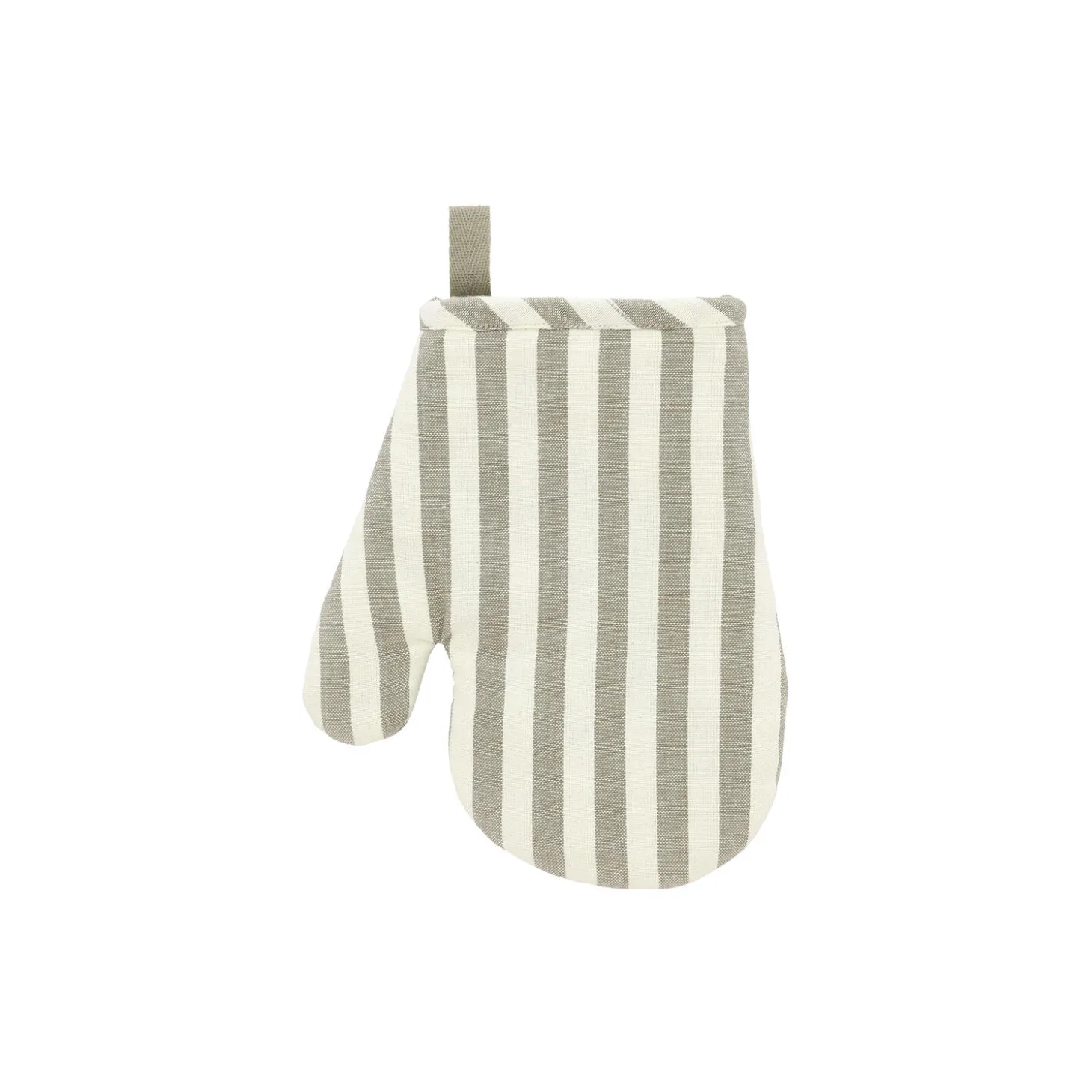 Klassisk og praktisk. Harmony-køkkenserien har et design, der aldrig går af mode, og fås i en ensfarvet udgave samt to stilfulde stribede mønstre. Serien er i genanvendt bomuld og passer ind i alle køkkener. Opgradér dit køkken med Harmony-serien, hvor tidløse produkter blandes med omtanke for miljøet. Mini-ovnhandsken er designet med fokus på at reducere materialeforbruget uden at gå på kompromis med funktionaliteten. Den kompakte størrelse, 19 x 26 cm, gør også, at handsken fylder minimalt, når du skal lægge den på plads i skab eller skuffe. Handsken har naturligvis også en praktisk strop, så den nemt kan hænges på en krog. Grydelapperne og ovnhandskerne beskytter mod kontaktvarme ved 250 °C i maks. 15 sekunder.