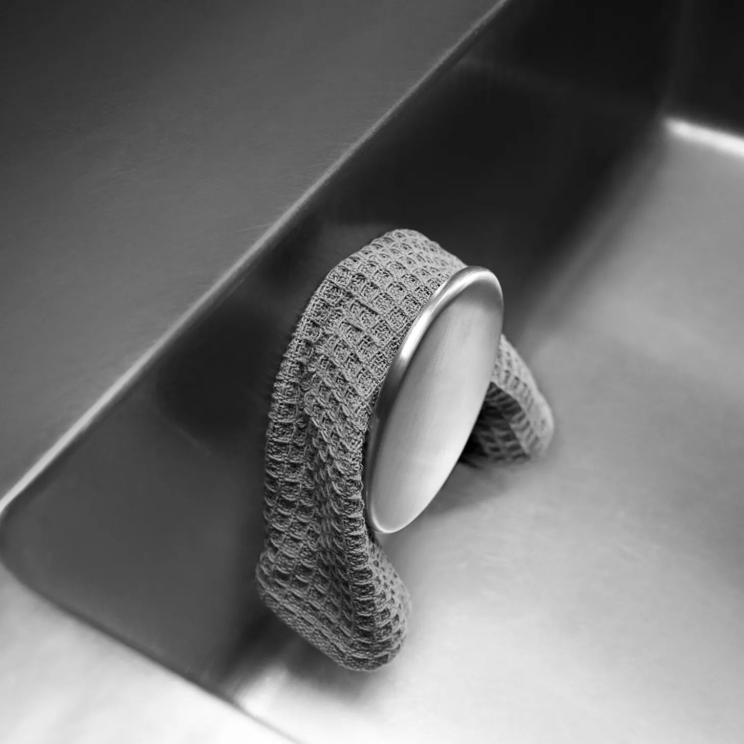 Slut med karklude, der ligger og flyder. Værn om den gode køkkenhygiejne og giv kluden sin egen funktionelle tørreplads diskret og ude af syne på indersiden af vasken. Holderen sidder fast med en stærk sugekop og monteres nemt. Sæt blot sugekoppen på vaskens side og drej metalhjulet. Afmonter ved at dreje metalhjulet modsat. Holderen passer på vaske med glat eller blank overflade.