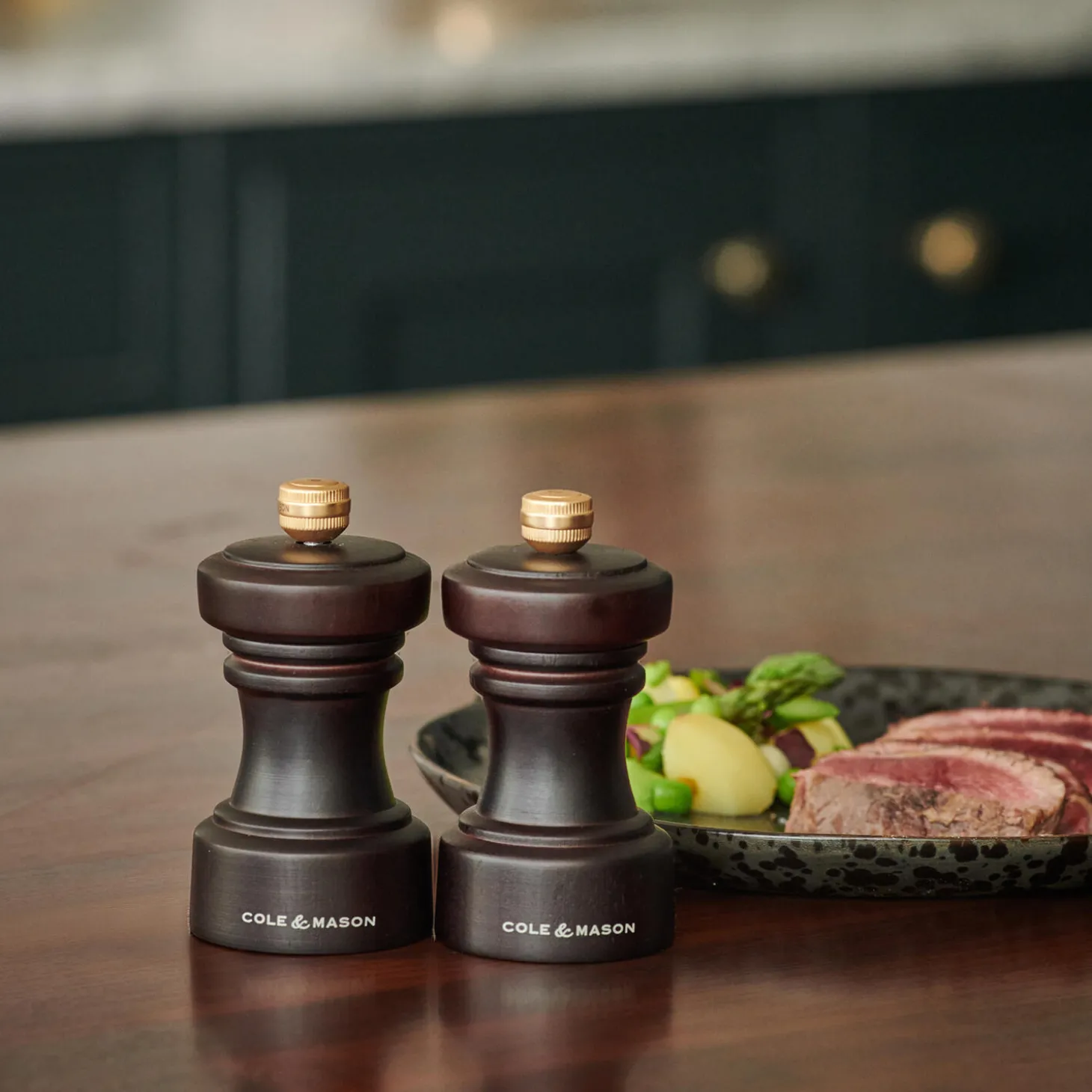 Som med London-møllerne, er Hoxton inspireret af den smukke art deco og industrielle britiske arkitektur, der findes i hele London. Med en højde på 104 mm er den designet med nutidens forbrugere i tankerne, dem der leder efter pladsbesparende løsninger, kvalitetsprodukter og avanceret design. Juster let malingen fra fint til groft ved at dreje knappen på toppen af møllen, produceret i bøgetræ af høj kvalitet, og leveres ufyldte. Fås som enkeltkværne såvel som gavesæt (farve chocolate), hvor gavesættet leveres i premium gaveæske. Alle pebermøller er udstyret med Cole og Mason Precision carbonstål mekanismer og er dækket af vores livstidsgaranti. Saltmøllerne er alle udstyret med vores anti-rust keramiske mekanisme af høj kvalitet.