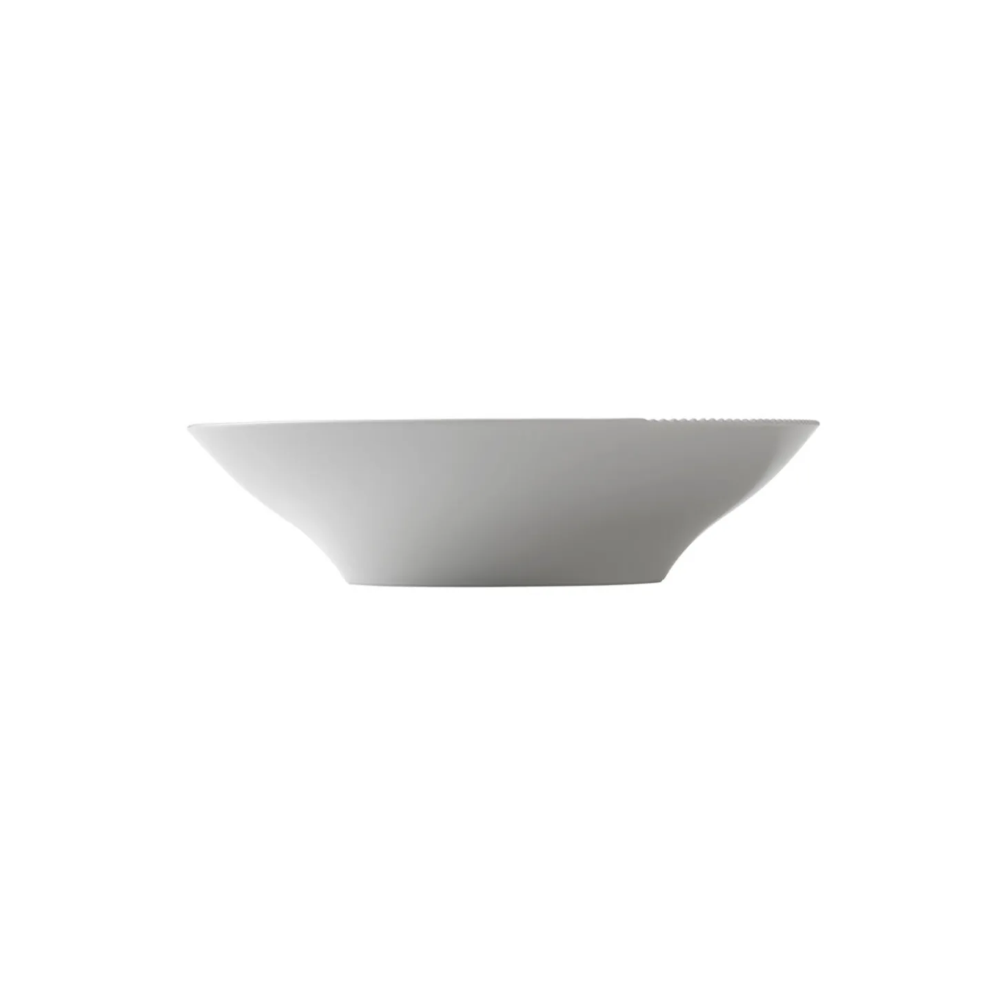 Hvid Elements dyb tallerken i porcelæn fra Royal Copenhagen. Størrelsen og de charmerende detaljer på denne Hvid Elements Dyb Tallerken på 25 cm gør den velegnet til alt fra enkle portionsanretninger til tilbehør til maden. Tallerkenen er dekoreret med fiskeskælsmønstre og et geometrisk felt af taktile rifler, der understreges af Flora Danicas ikoniske, takkede kant. Den hvide skål er let at sætte sammen med steldele fra andre Royal Copenhagen stel for et helt personligt udtryk.