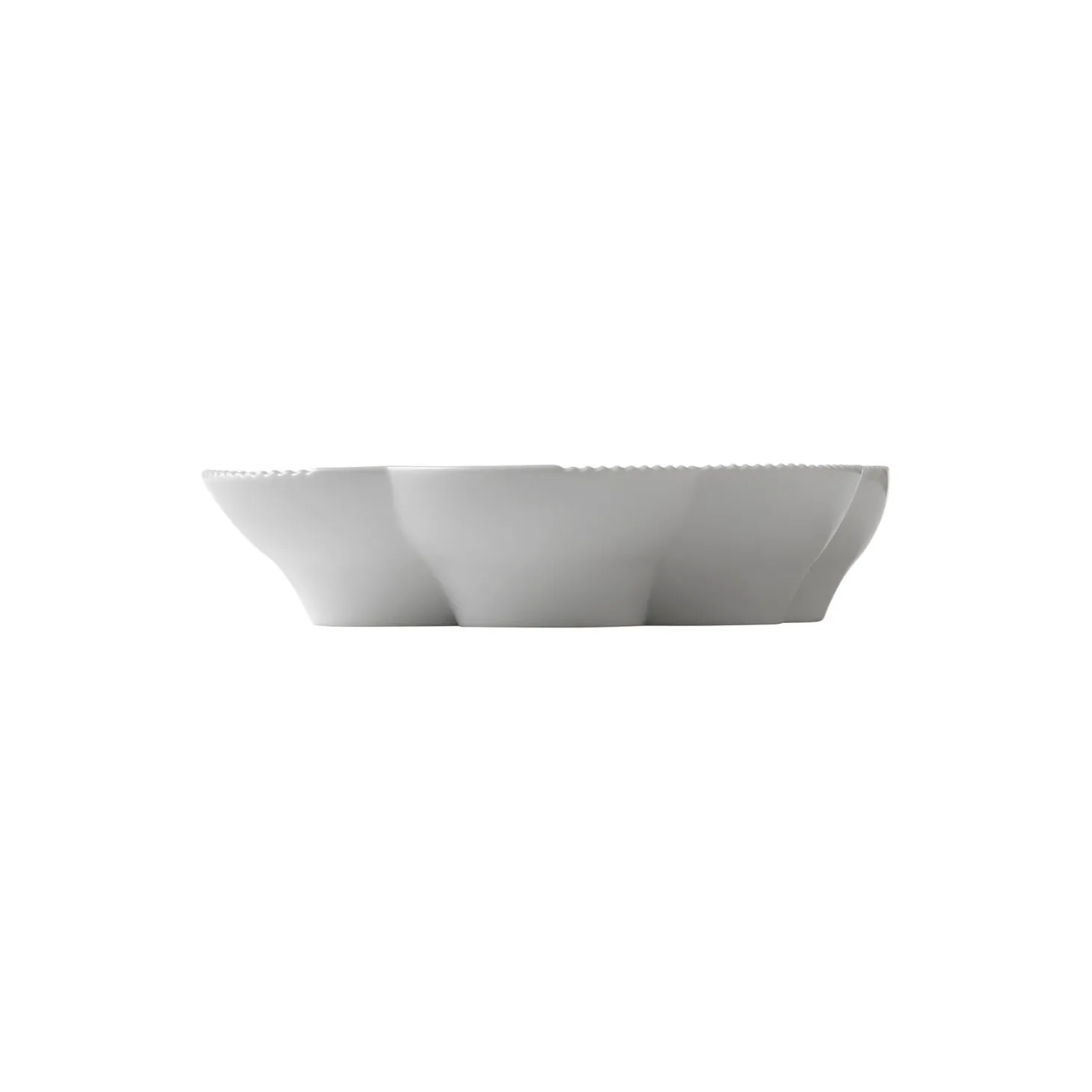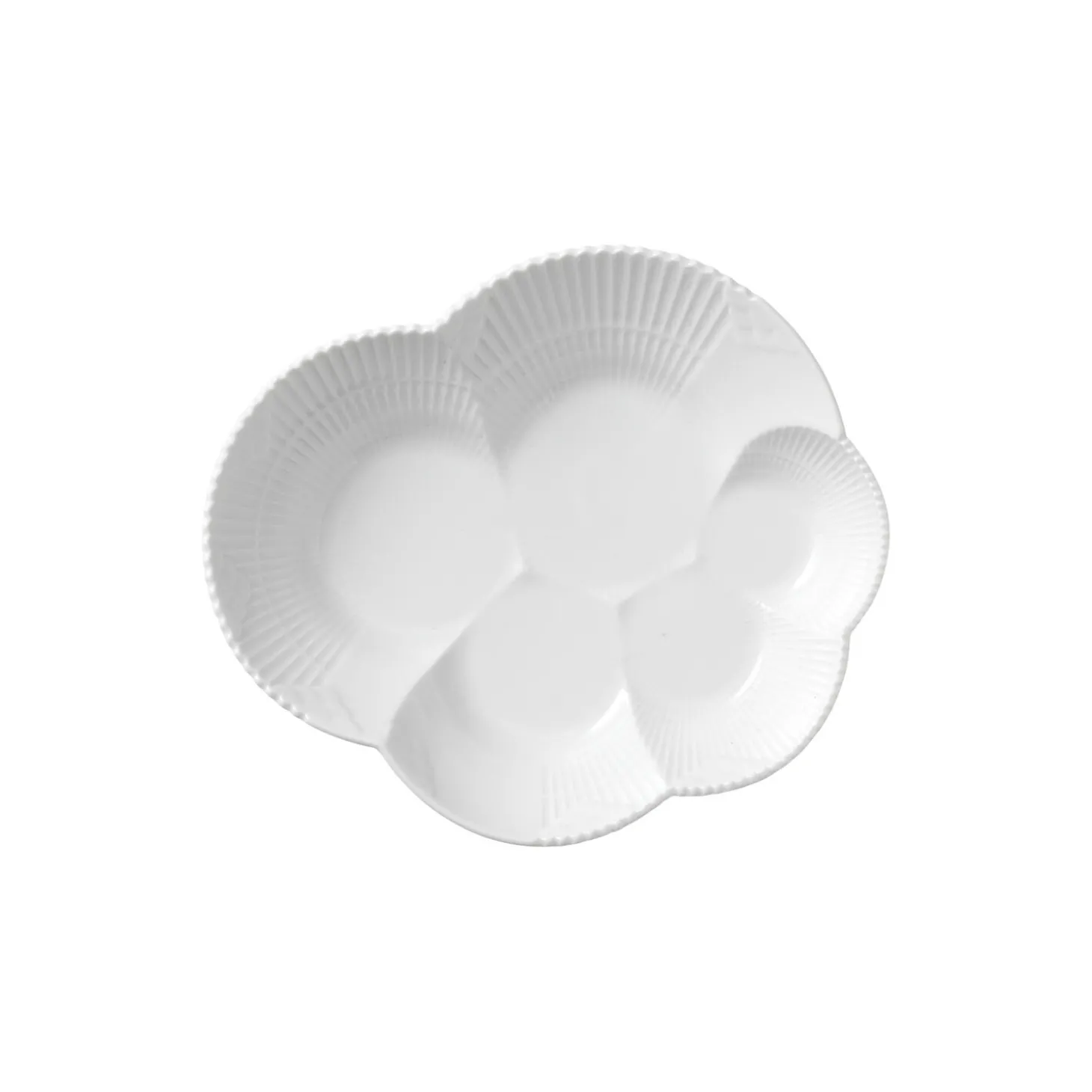 Hvid Elements fad i porcelæn fra Royal Copenhagen. Det lille Fad på 19 cm fra Hvid Elements-stellet er skabt til hyggelige stunder og forkælelse. De organiske former og overraskende elementer på fadet skaber et legende udtryk, og de afrundede kanter kan med fordel bruges til placering af en lille kop eller skål.