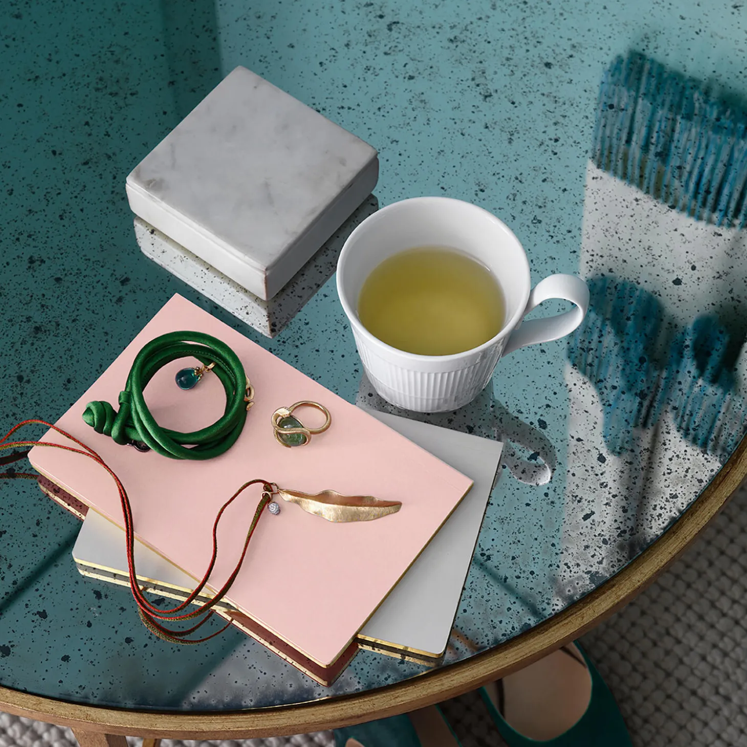 Hvid Elements højhankskop i porcelæn fra Royal Copenhagen. Gør morgenkaffen eller teen ekstra særlig med denne Højhankskop på 35 cl i Hvid Elements. Bunden af koppen er udsmykket med fine fiskeskælsdetaljer, hvorfra håndlavede rifler udspringer og omkranser det hvide porcelæn i et legende udtryk. Koppen er en sikker favorit og en smuk tilføjelse til en samling af andre Royal Copenhagen kopper og krus.