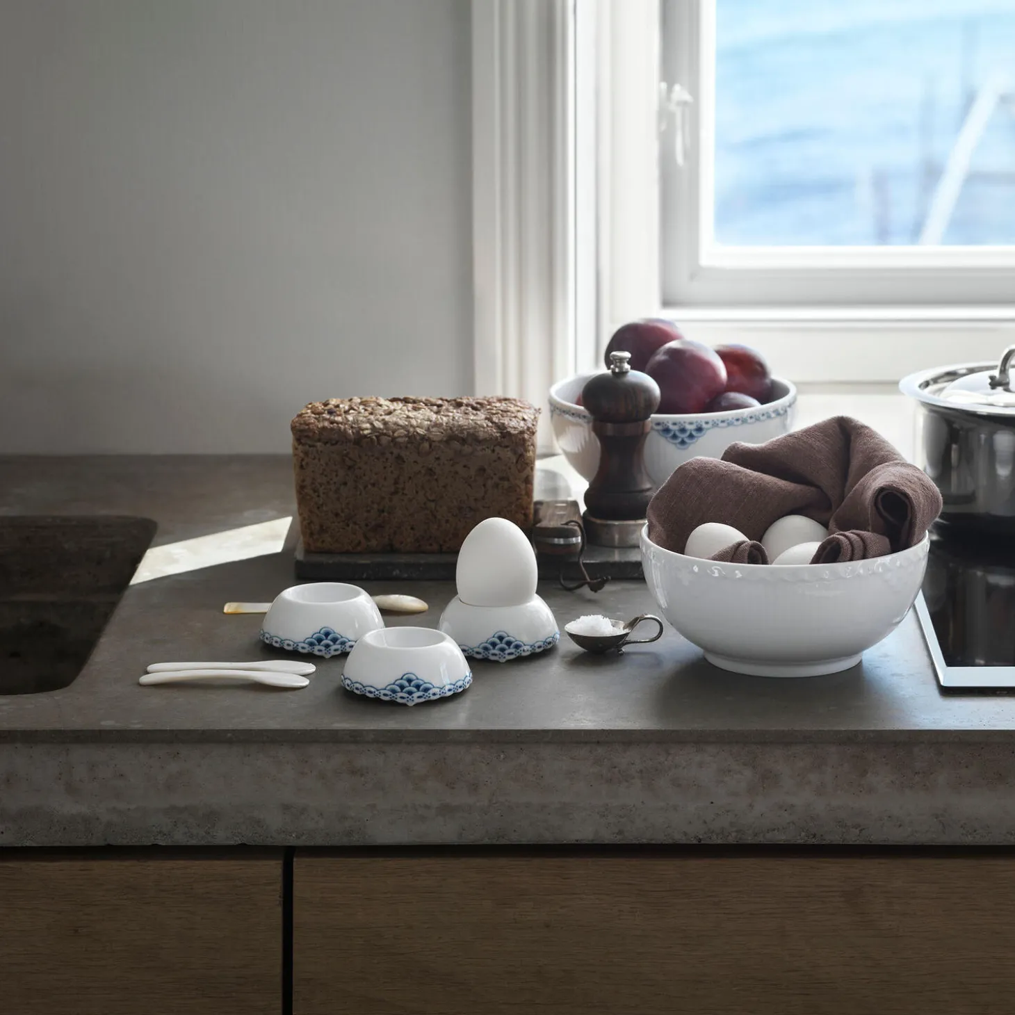 Hvid Halvblonde skål i porcelæn fra Royal Copenhagen. Denne skål på 18 cm i Hvid Halvblonde har et særligt udtryk skabt af den evigt tidløse blondekant og det ubemalede, hvide porcelæn. Fra halvblonden hænger smukke dekorationer og skaber en elegant kontrast til de stringente rifler. Skålen er smuk som serveringsskål eller som et dekorativt element.