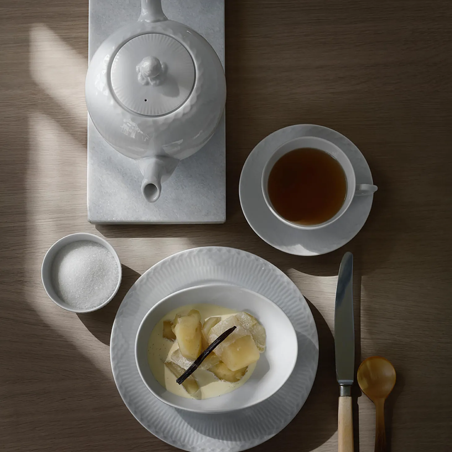 Hvid Halvblonde tekop med underkop i porcelæn fra Royal Copenhagen.