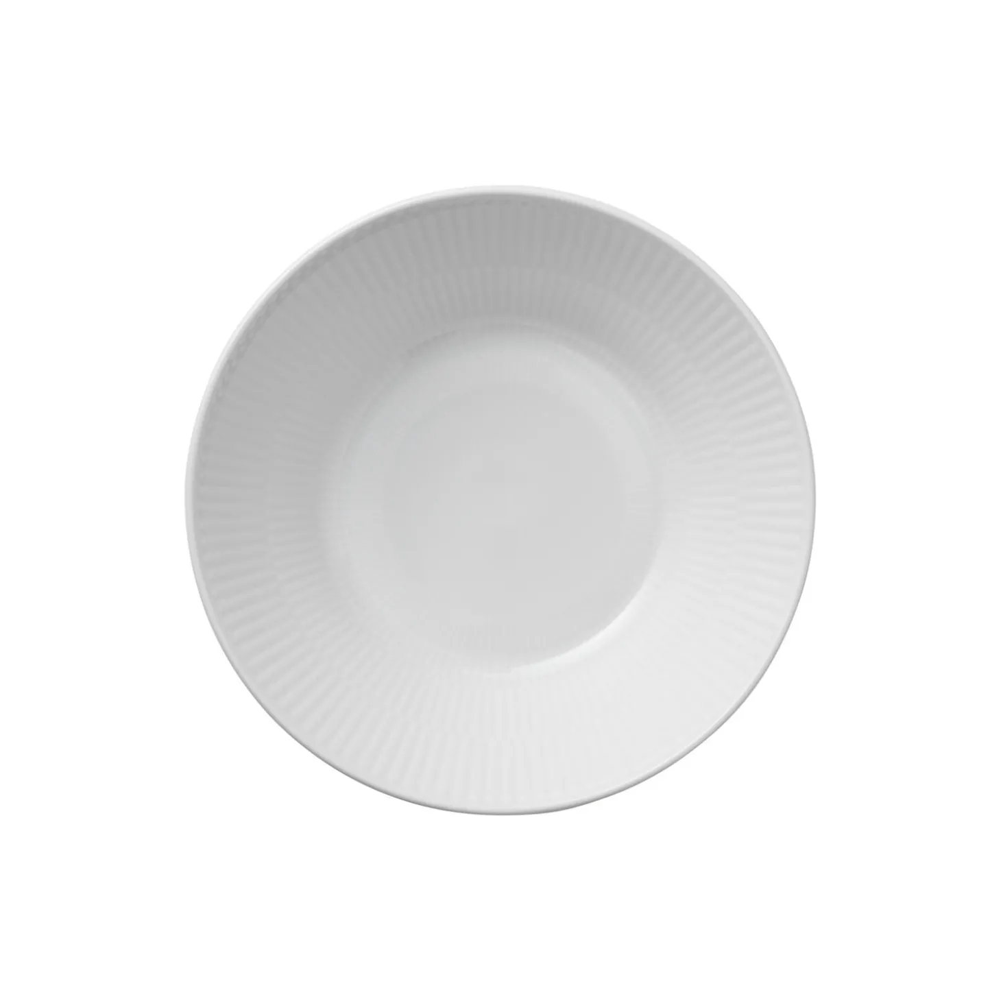Hvid Riflet dyb tallerken i porcelæn fra Royal Copenhagen. Denne lille Dyb Tallerken på 17 cm i Hvid Riflet har et enkelt udtryk, som forstærkes af tallerkenens kantløse design. Størrelsen på den dybe tallerken gør den blandt andet velegnet som en lille serveringsskål eller som morgenmadsskål.