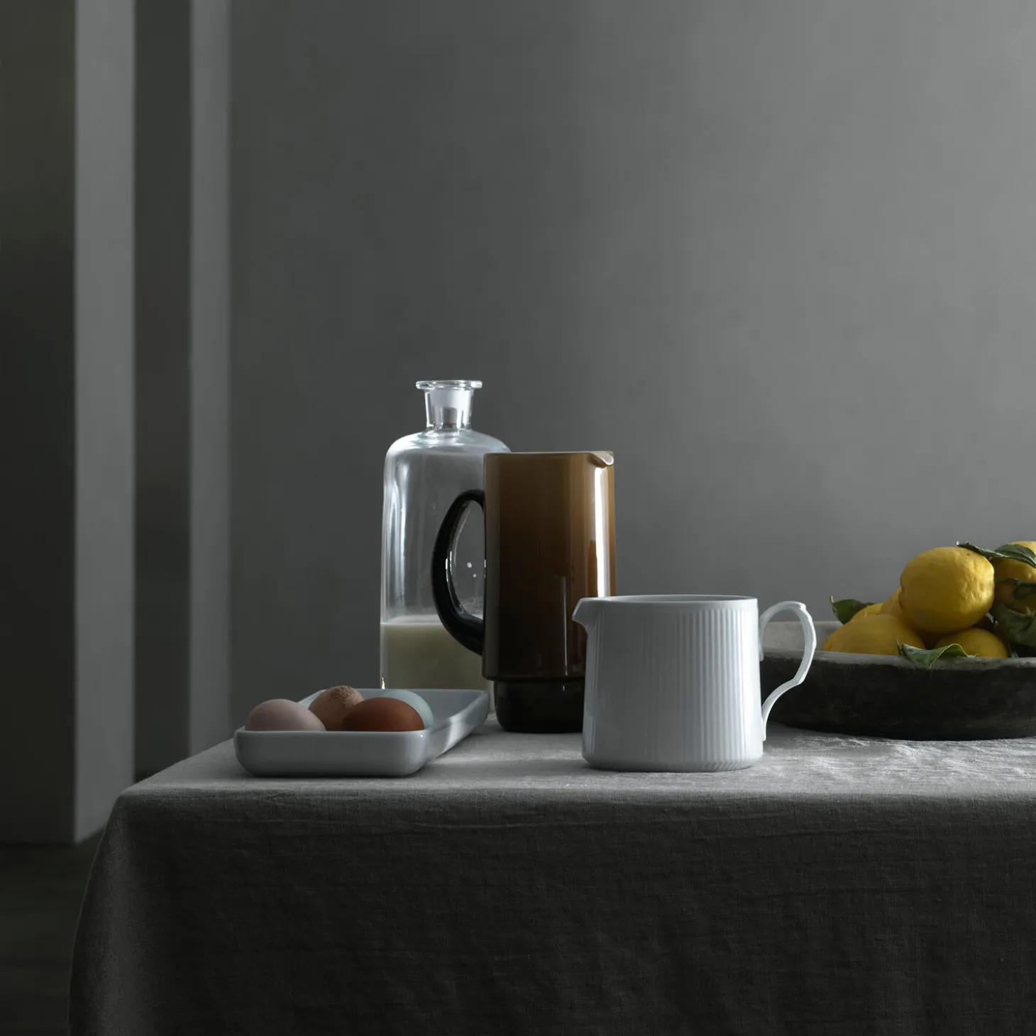 Hvid Riflet fad i porcelæn fra Royal Copenhagen. Med sin smukke enkelthed og skarpe, rektangulære formsprog er dette elegante Hvid Riflet Fad på 36 cm oplagt som tapasfad eller til andre små serveringer. Det ubemalede porcelæn er udsmykket med stellets klassiske rifler.