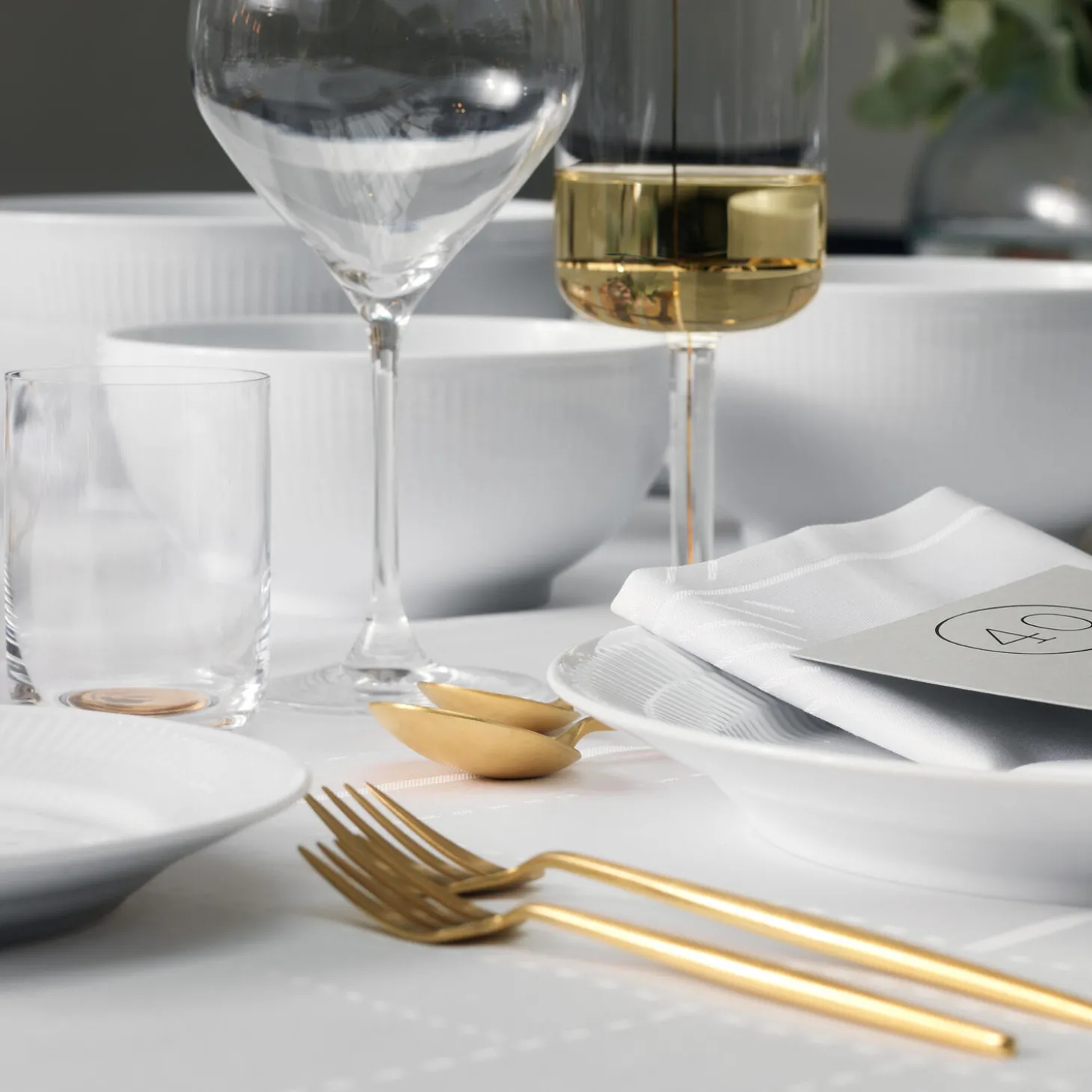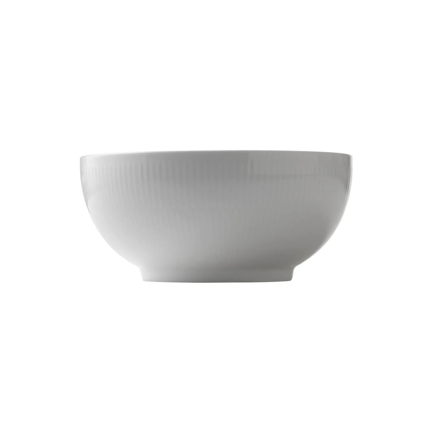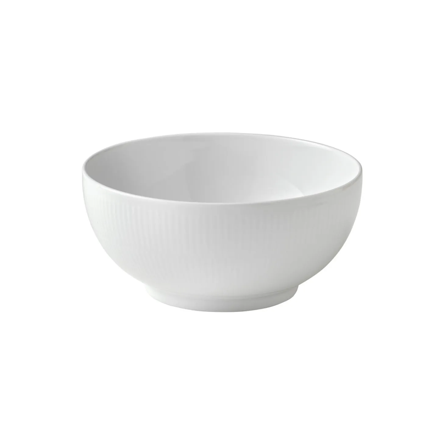 Hvid Riflet skål i porcelæn fra Royal Copenhagen. Denne smukke Hvid Riflet Skål på 180 cl har et rent udtryk af ubemalet porcelæn, der prydes af håndlavede rifler. Størrelsen på skålen giver plads til årstidens sprøde salater eller friske frugt.