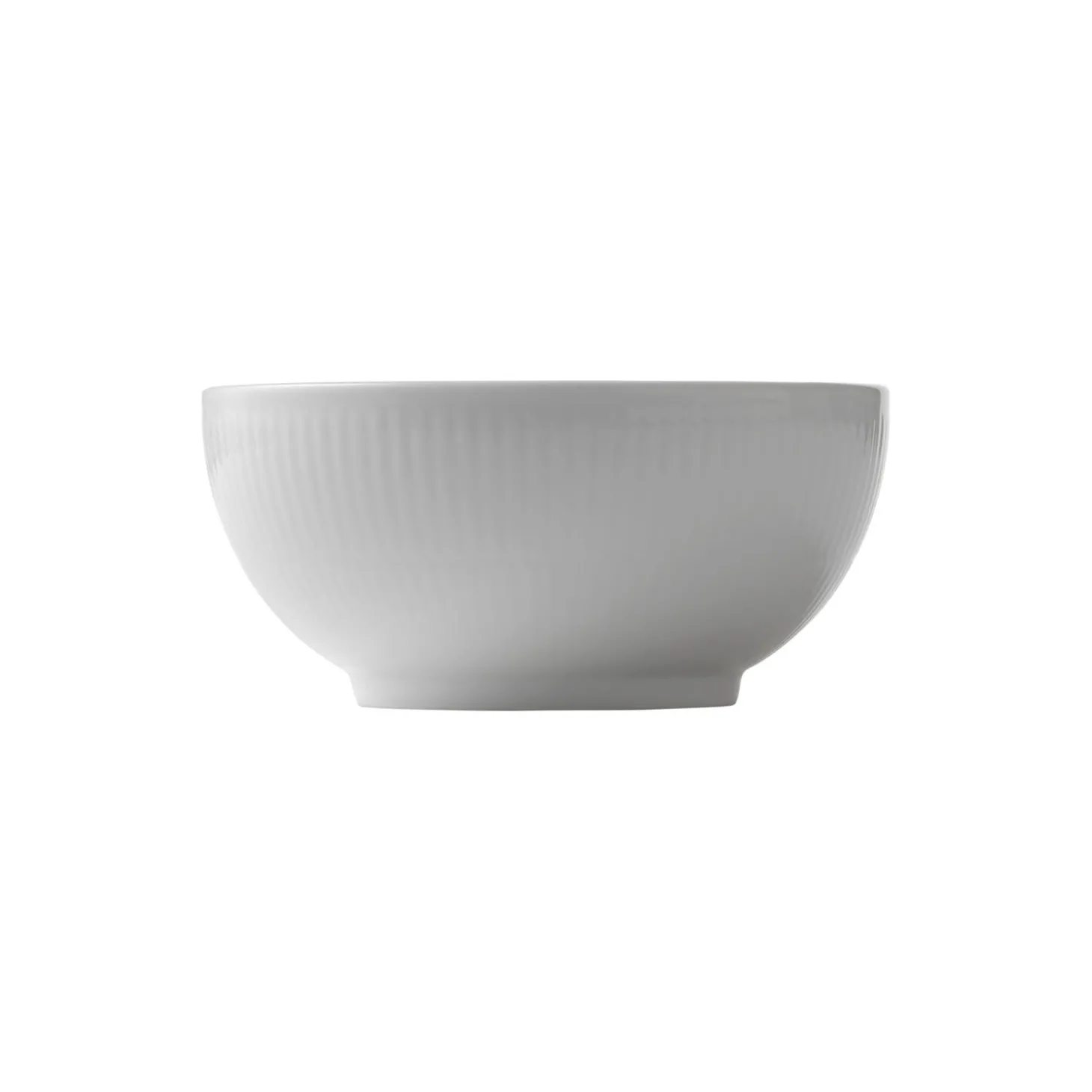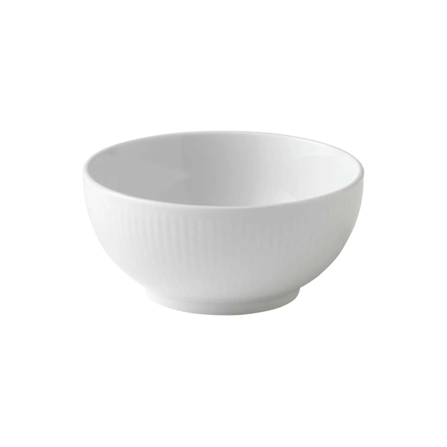 Hvid Riflet skål i porcelæn fra Royal Copenhagen. De ubemalede rifler på denne lille Hvid Riflet Skål på 47 cl er indbegrebet af stellets tidløse og enkle udtryk. Den klassiske skål har en størrelse som er ideel til små serveringer eller som morgenmadsskål.