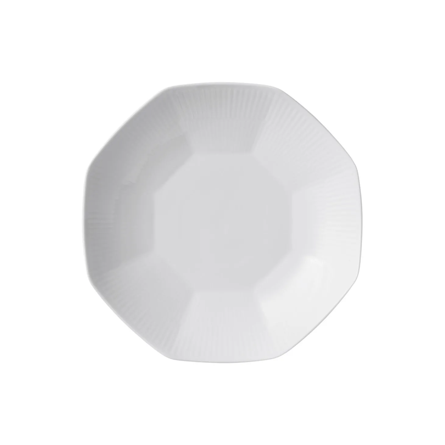 Hvid Riflet skål buet form i porcelæn fra Royal Den helt særlige ottekantede form på denne Hvid Riflet Skål på 25 cm tilfører et overraskende element til en hver borddækning. Skålens kontemporære udtryk prydes af håndudskårne rifler, der skaber en levende taktilitet på det ubemalede porcelæn. Skålen kan bruges som en serveringsskål eller som et dekorativt element.