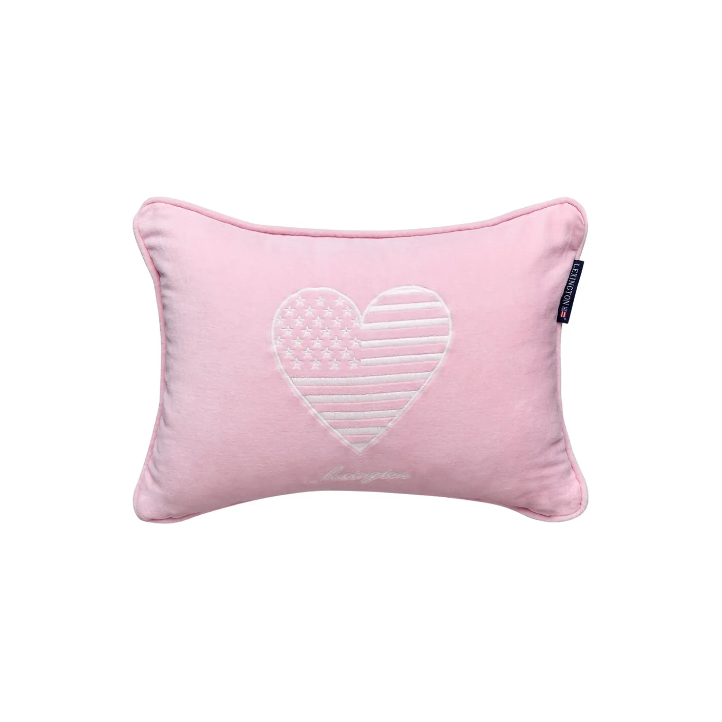 Denne 30 x 40 cm store pude i økologisk bomuldsfløjl er blød og lækker og perfekt til børn. Med et broderet Lexington-logo og matchende kantrør i selvstof giver den charme til ethvert rum. Inderpude medfølger. Fremstillet i Indien, Oeko Tex-certificeret.