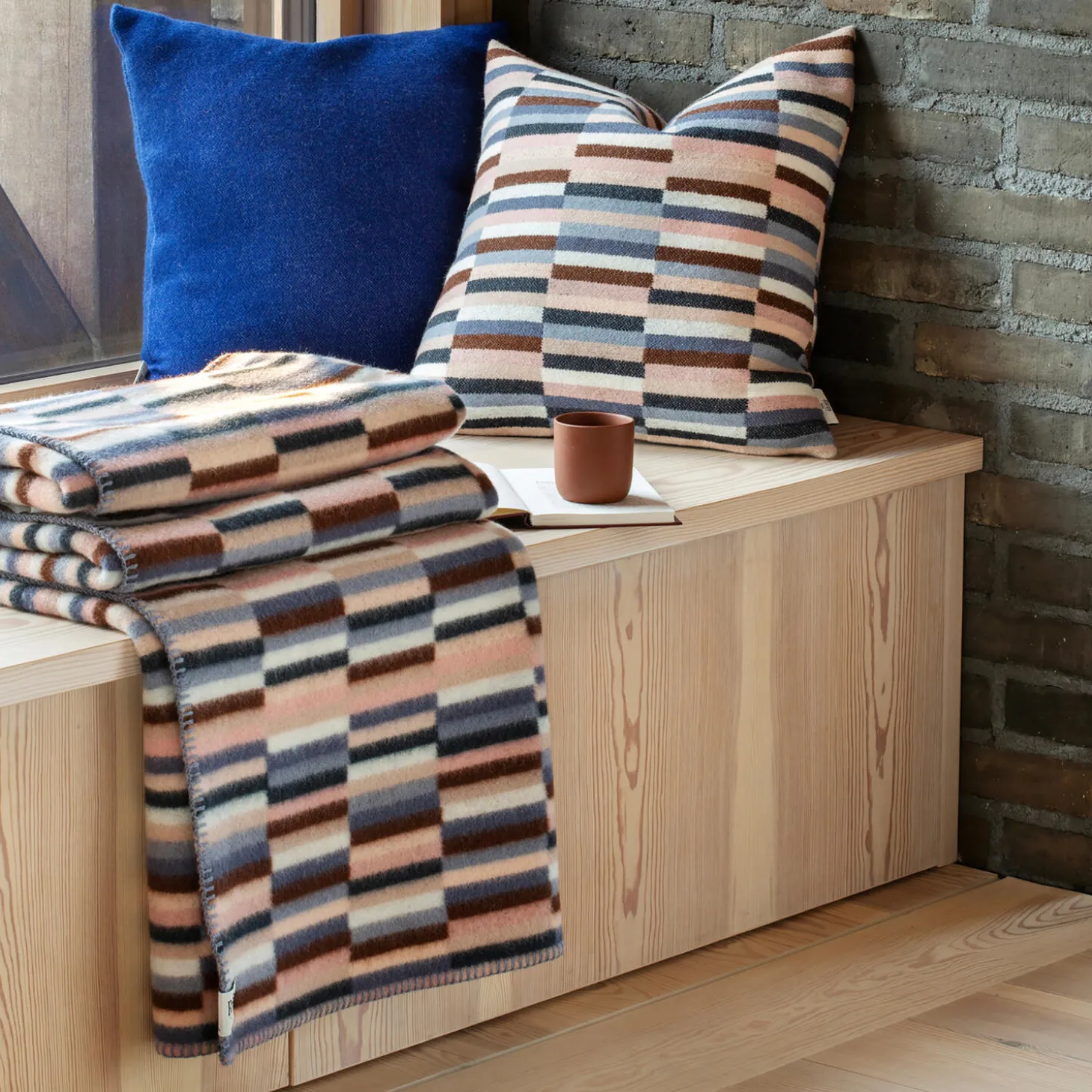 The new Ida design draws inspiration from patchwork and hand made tapestries. Initially A&V made a full scale model of the design from coloured paper, and the traces of the hand through small imperfections and irregularities were preserved and brought into the woven fabric.