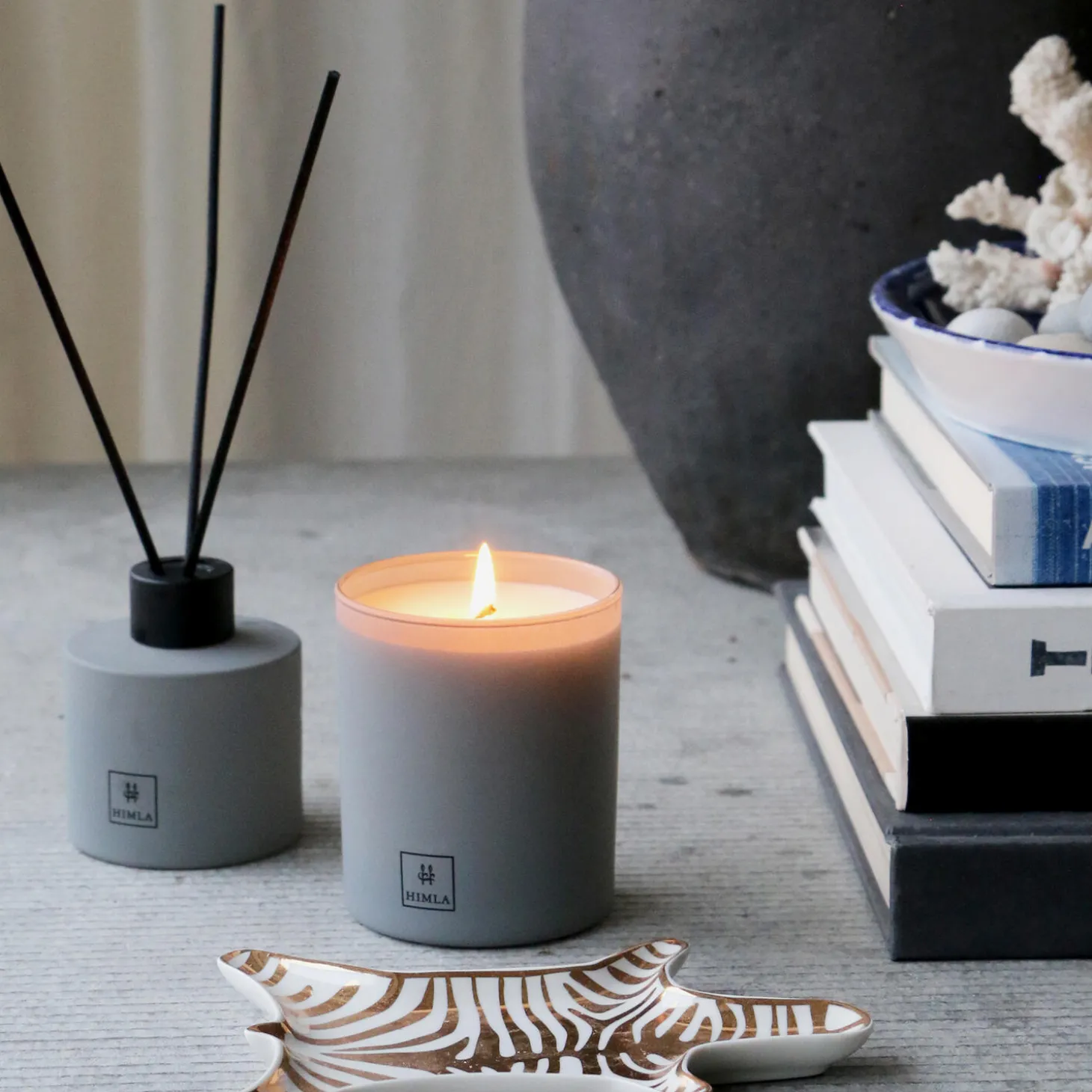Himlas duftserie Inhale fås både som duftlys og rørdiffusorer. Duftlyset kommer i et mat farvet glas og indeholder kun naturlige ingredienser; sojabønnevoks og duftolie. Duftlyset har en brændetid på 60 timer, er 100% vegansk og indeholder ikke palmeolie eller paraffin. Scense of silence er en elegant og spændende duft med krydrede noter af patchouli, moskus og rav.