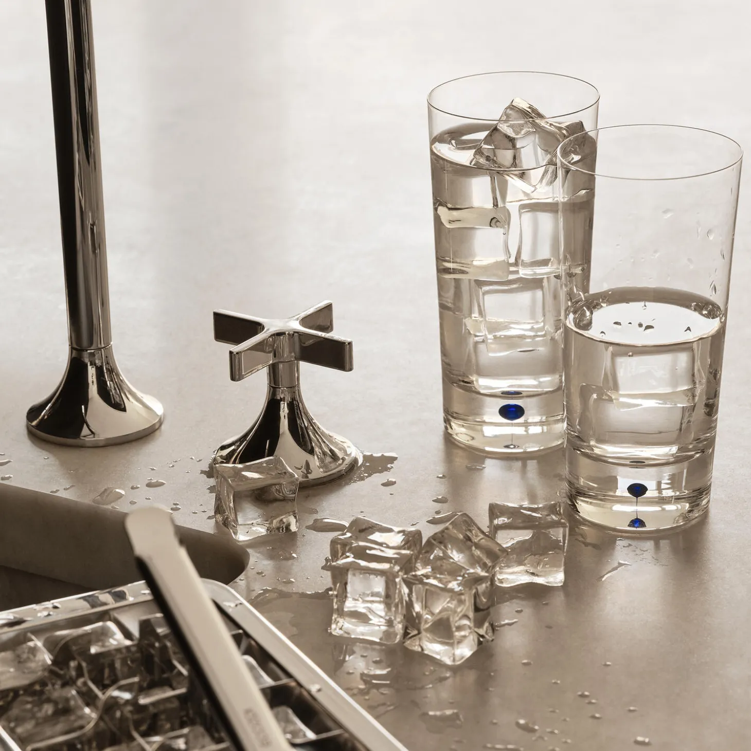 Intermezzo Tumbler by Orrefors holds 40 cl and is intended as a highball glass for mixed drinks with or without alcohol. The glass is mouth-blown in Sweden by expert glassblowers with a drop of blue sealed at the bottom – an innovation based on traditional glass craftsmanship. The series was introduced in 1984 and is designed by Erika Lagerbielke.
