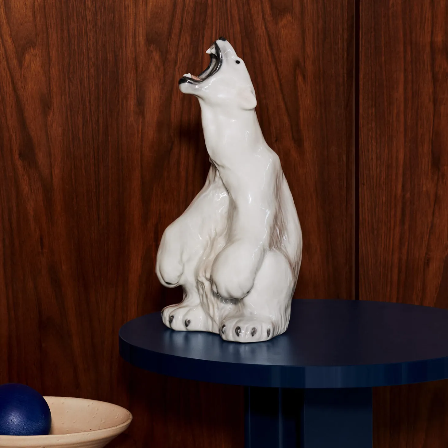 Den brølende isbjørn er en af de første underglasur dekorerede figurer fra Royal Copenhagen. Den blev oprindeligt skabt i 1894 af kunstneren Carl Frederik Liisberg. Figuren er håndmalet, inden den glaseres og brændes, og den udgør et fantastisk indretningsobjekt i dit hjem.