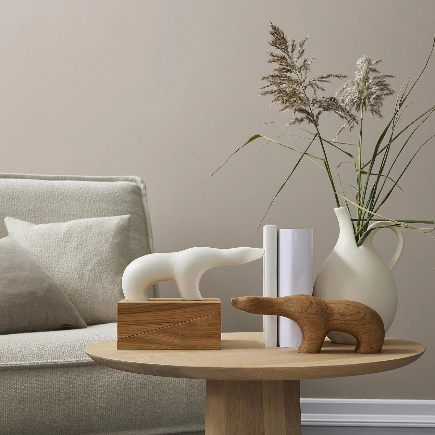 Isbjørnen er skabt af den norske designer Arne Tjomsland. Ud af den enkle formgivning og de bløde linjer træder Isbjørnen tydeligt frem af træet, fuld af naturens vilde kraft. Figuren er designet i 1955, men dens tidløse udtryk gør den til en klassiker, der passer smukt ind i ethvert hjem.