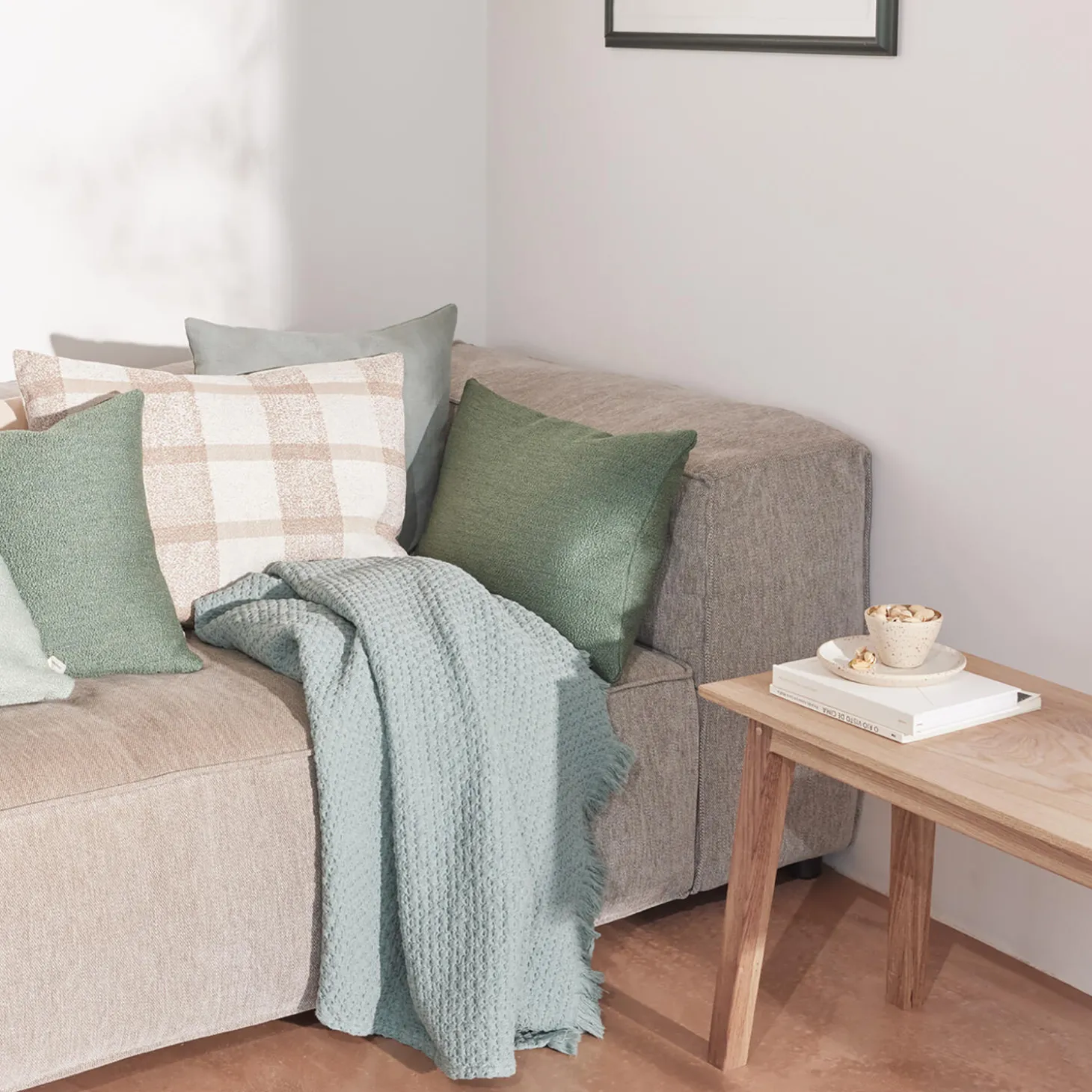 Smuk ensfarvet bouclé pude vævet i højeste kvalitet, så Jazz kan pynte i dit hjem i mange sæsoner. Puden leveres med 100% andedun/-fjer og pudevår i 100% bomuldsbetræk.