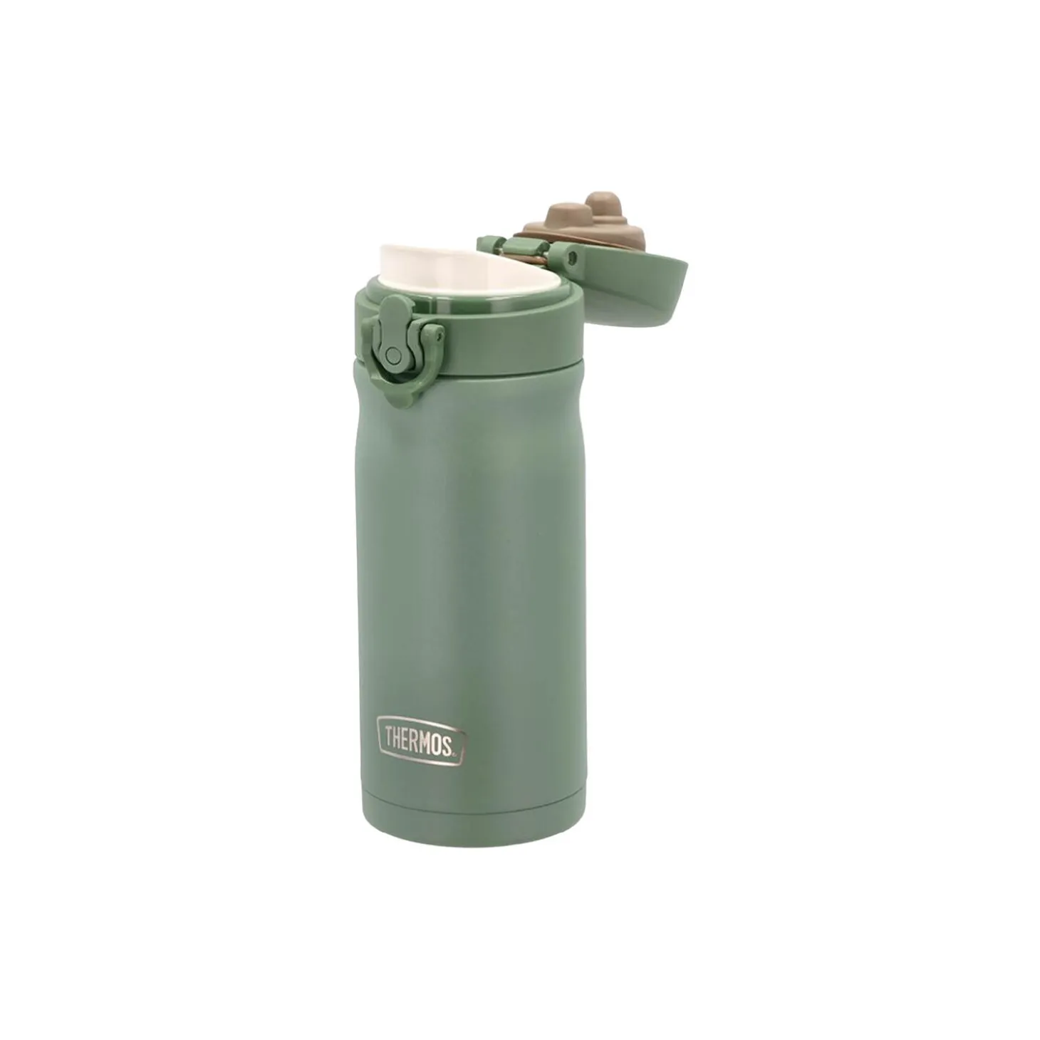 Thermos JMY 350 ml er en smart blanding af en lille termoflaske og en termokop fremstillet i rustfrit stål med et drikkelåg. Kan bruges til både til kolde og varme drikke.